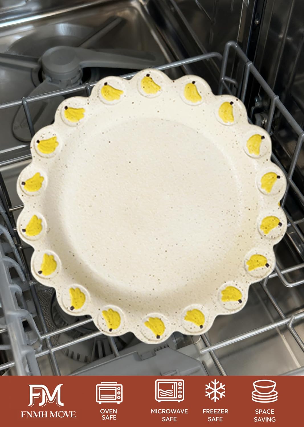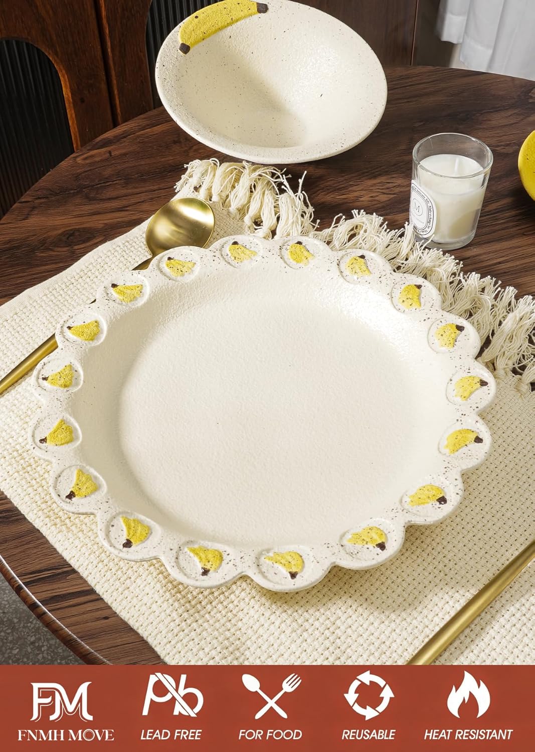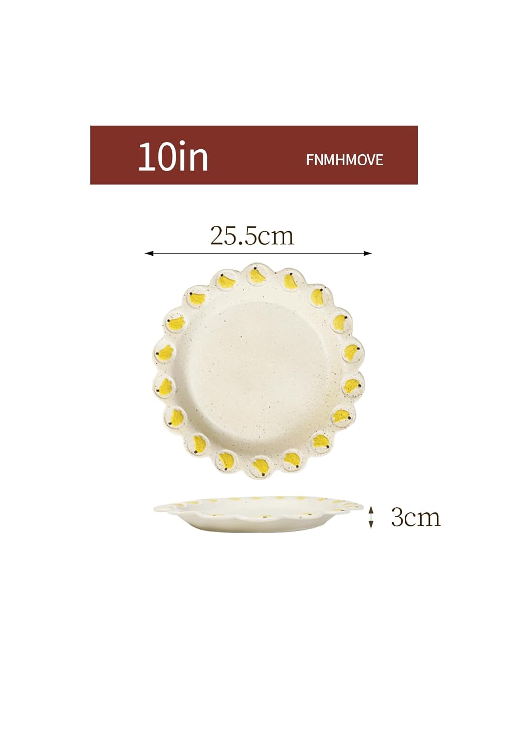 Specification: 10Inch Ceramic Dinner Plate with Hand-Painted Banana Design – Matte Glazed Stoneware Dish, Decorative Fruit Pattern Tableware for Everyday Dining & Oven Safe