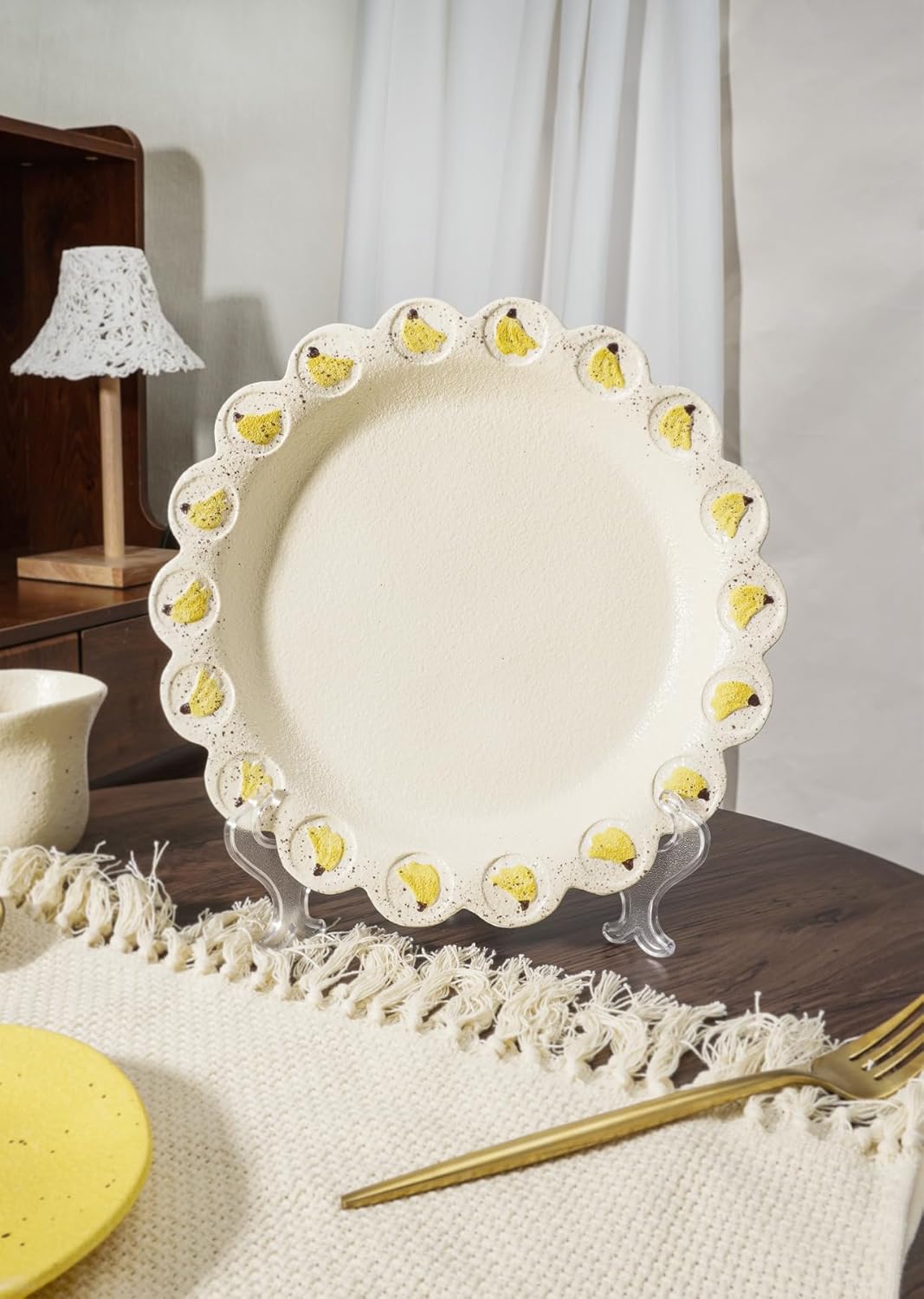 Unique Banana Accent Design: Add a playful yet elegant touch to your table with this 10.25-inch ceramic dinner plate. The hand-painted banana motif along the rim brings a splash of tropical charm to any meal.