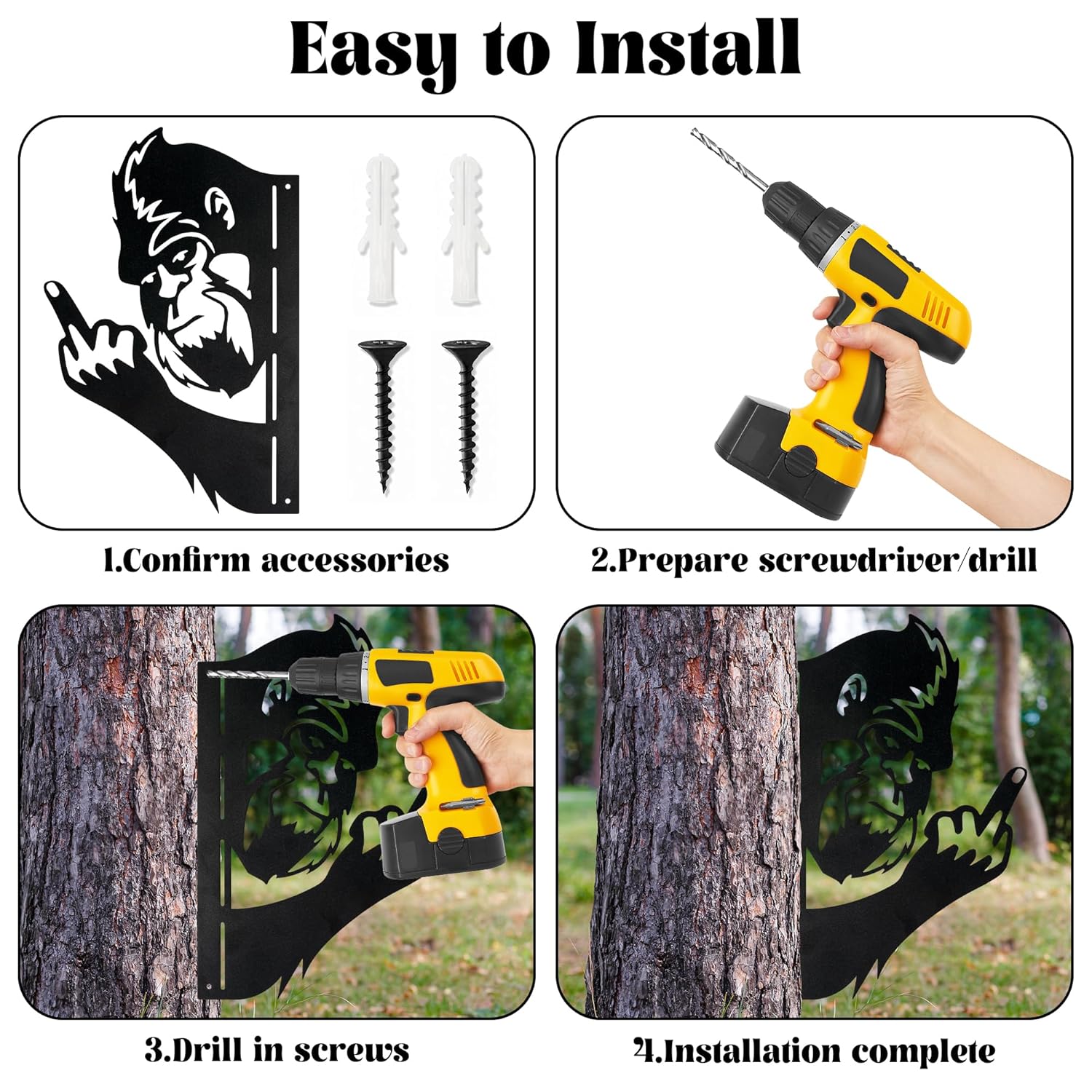 Easy Installation: This big foot animal peaking a boo flipping off statue cutout decor has pre-drilled holes on the sides for simple mounting. Just drill two holes at your desired spot and attach it to walls, trees, fences, or posts using nails or screws. You can enjoy the decor quickly without complex tools.