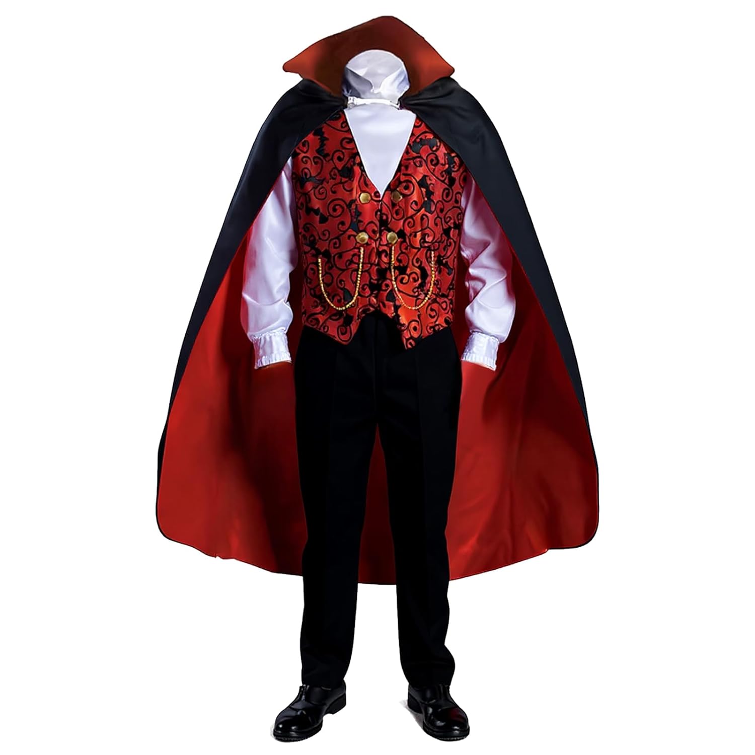 【Immersive Vampire Cosplay Experience】 The flowing cape, gothic shirt, and elegant cane create an authentic bloodthirsty vampire persona. Perfect for Halloween cosplay parties, costume contests, or spooky-themed events—let kids embrace their inner vampire with confidence and creativity, standing out in every eerie ensemble.