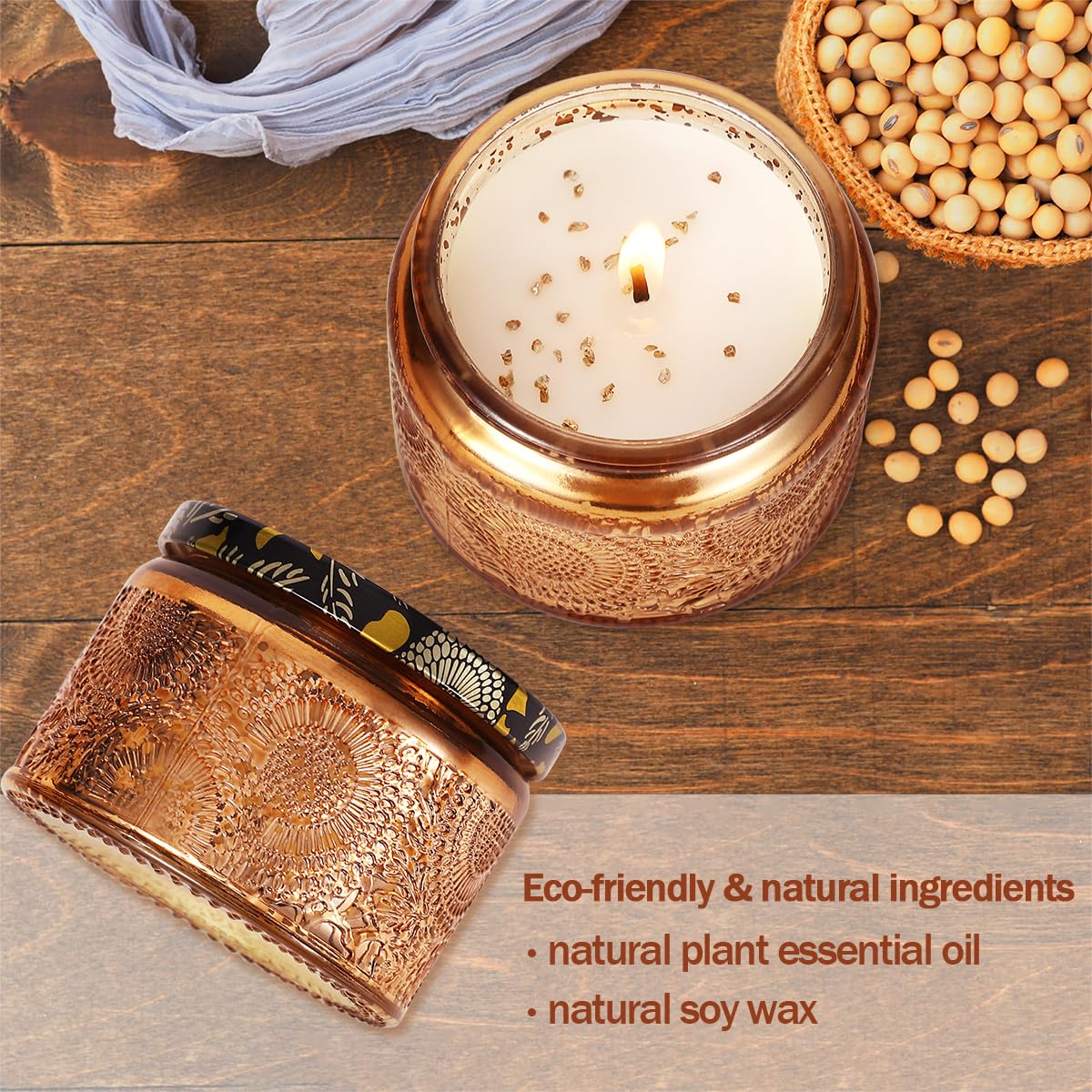 • Material: The candle made of natural soybean wax. These candle are filled with high-quality essential oils to make your home full of beautiful fragrance. The rotatable blades are made of lightweight metal and it can spin quickly when you light the candle.