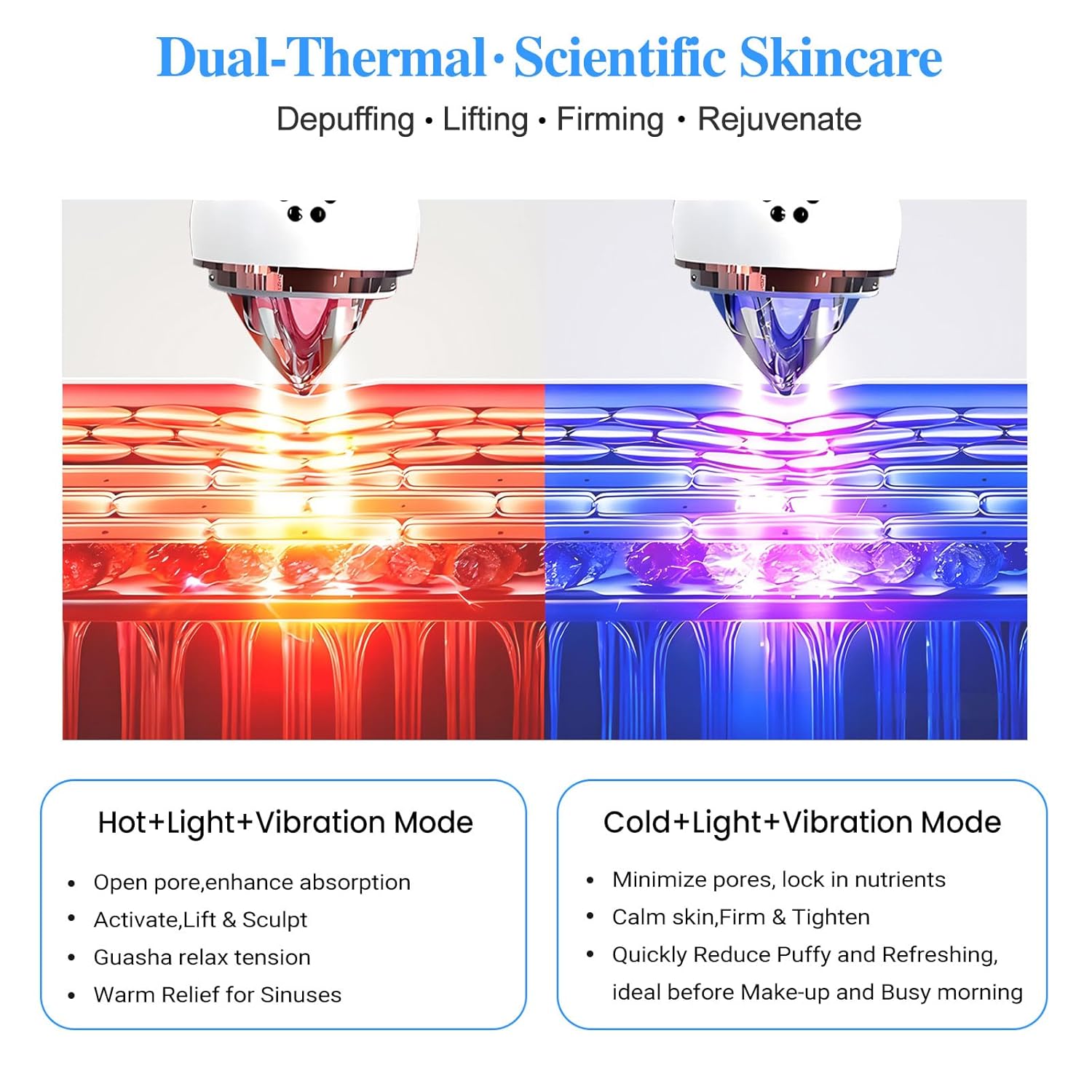 【Scientific Hot & Cold Therapy】Unlock the ultimate skincare cycle.Hot mode(107.6°F–122°F / 42–50°C): open pores, strongly boost absorption,and face tension relief. Cold mode(±14°C/±57.2°F): instantly locks in nutrients, minimizes pores,and reduces puffiness. Creates a complete routine for firmer, radiant skin,effectively reduces wrinkles, redness,rough, oily, dullness.