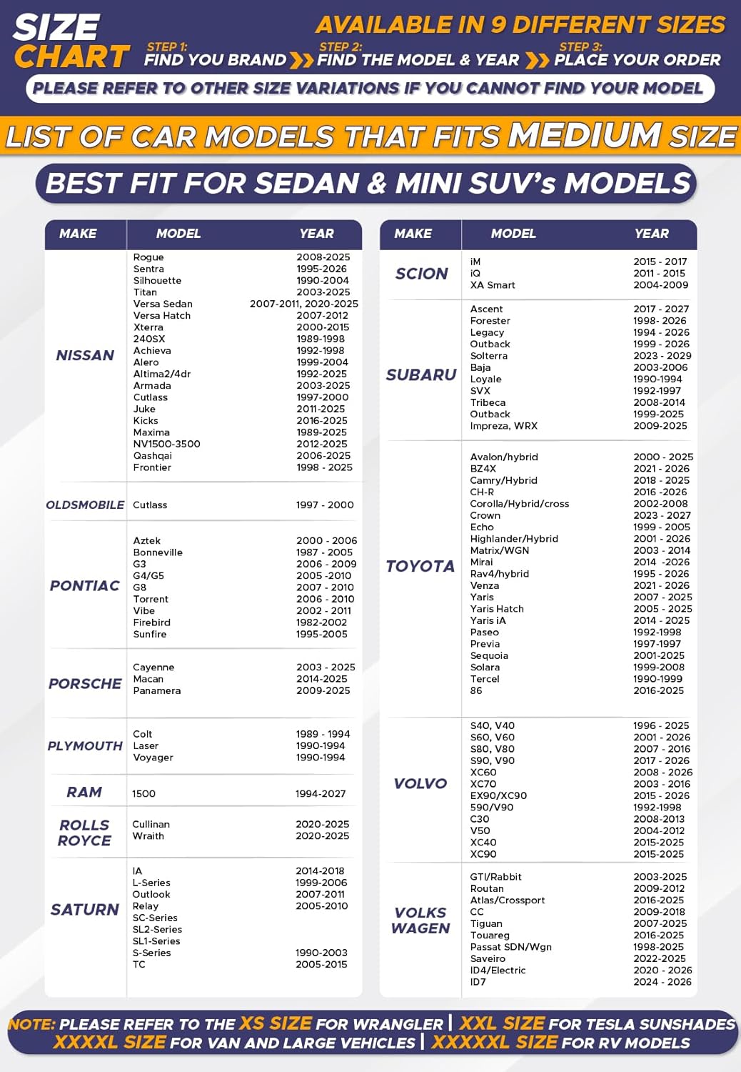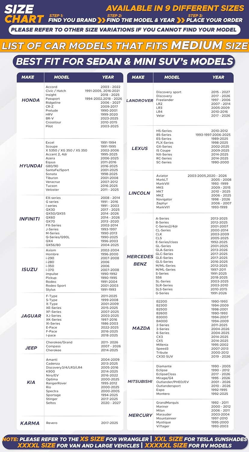 • Choose the Right Fit: Available in multiple sizes, EcoNour’s shades for windows are tailored to fit various vehicle models. Refer to the size chart to pick the best car window shade for maximum protection.
