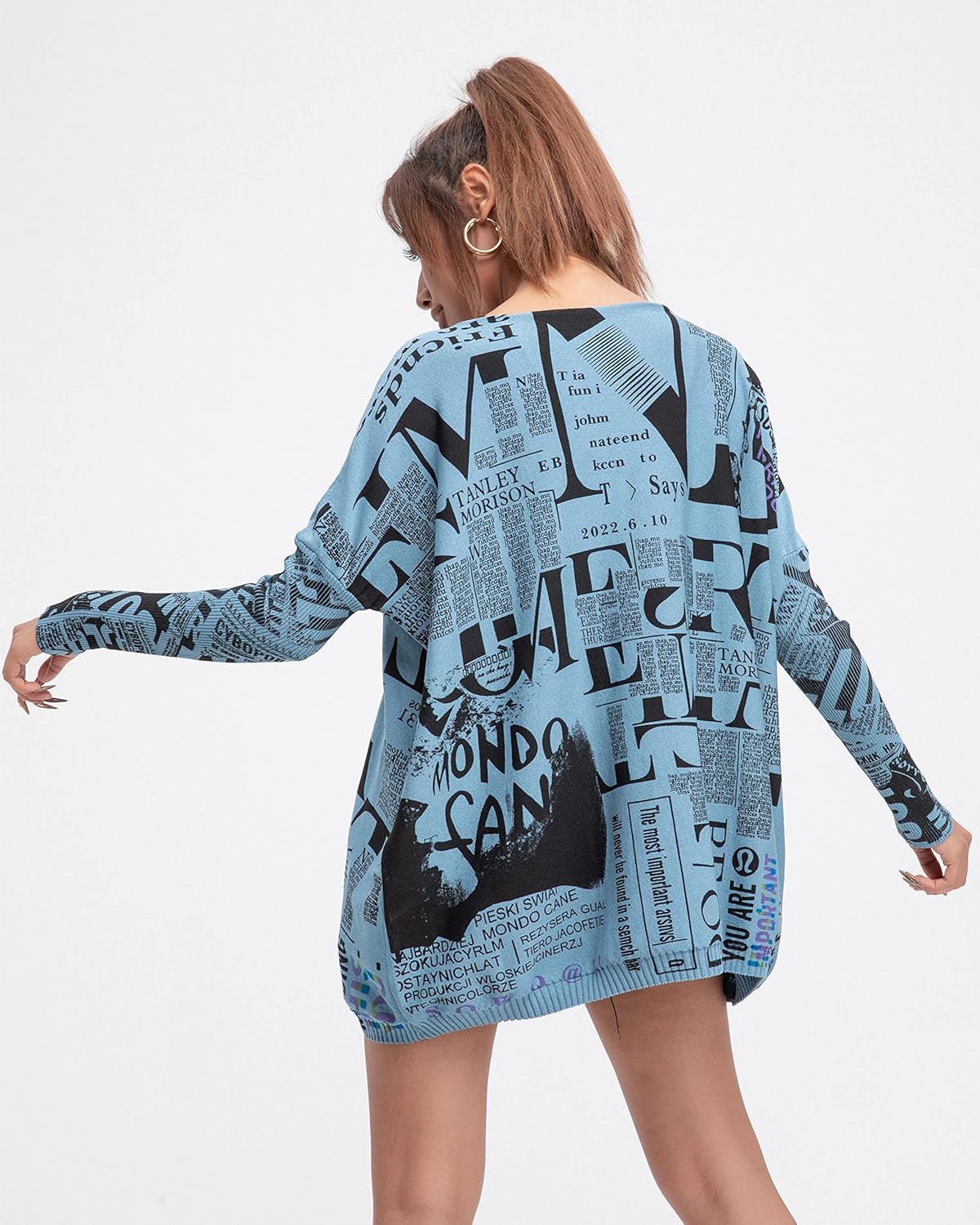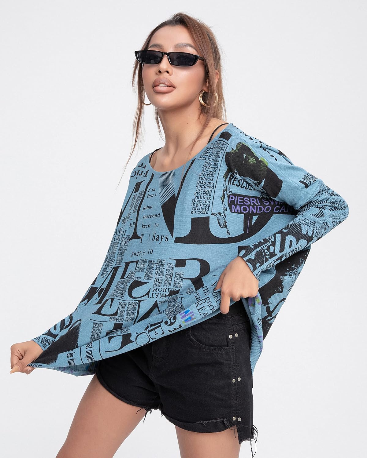 Design: This stylish sweater boasts long sleeves, off-shoulder, newspaper print, and a relaxed fit. The effortless look pairs well with sneakers.