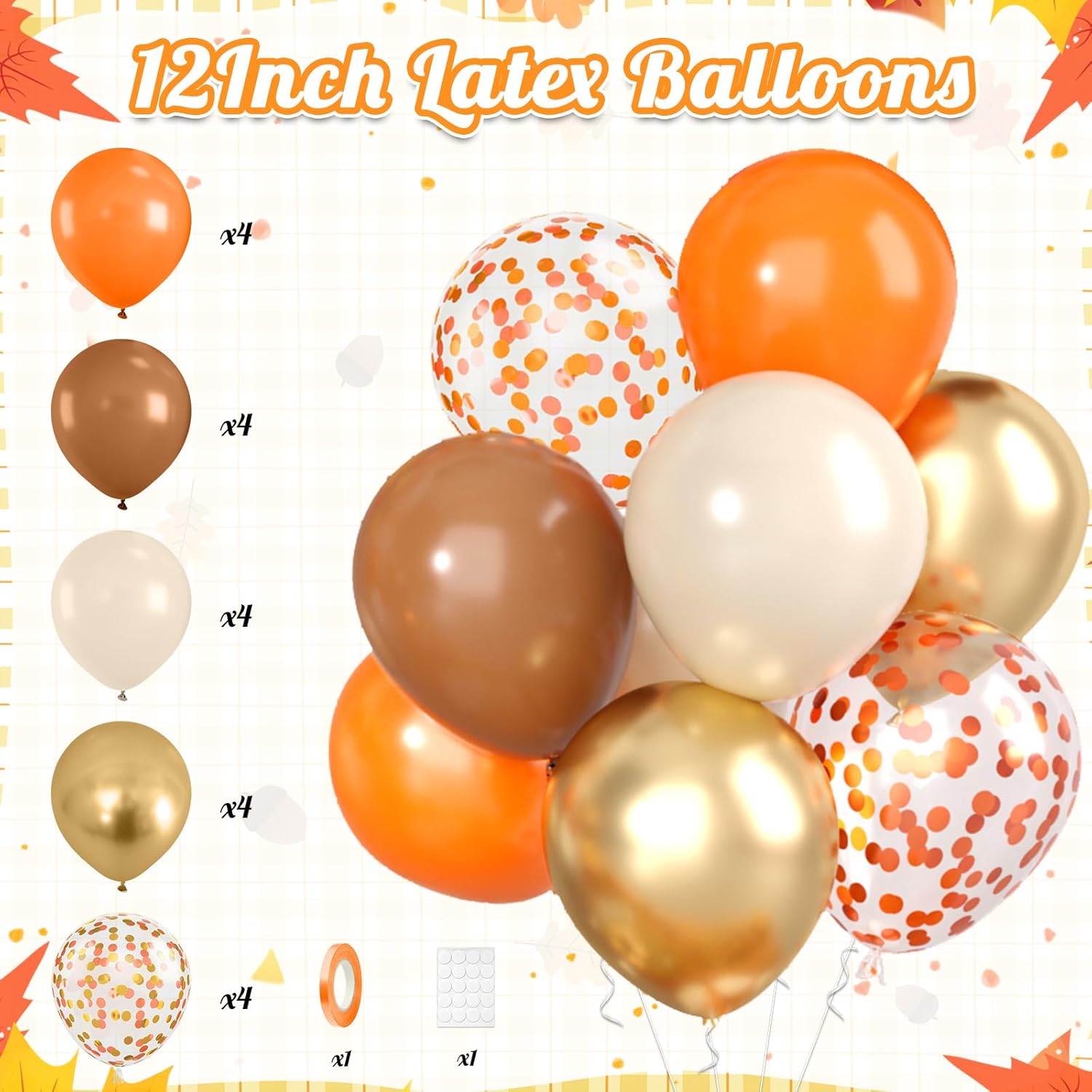 Fall Thanksgiving Decoration Kit:Includes everything you need for a cozy and festive autumn celebration: 1דGive Thanks” banner, 1×orange golden fringe curtain, 6×paper flowers (in fall colors), 1×maple leaves garland, 20× fall theme balloons and 2×foil balloon ( acorn and maple). Ideal for creating a warm and welcoming Thanksgiving atmosphere.