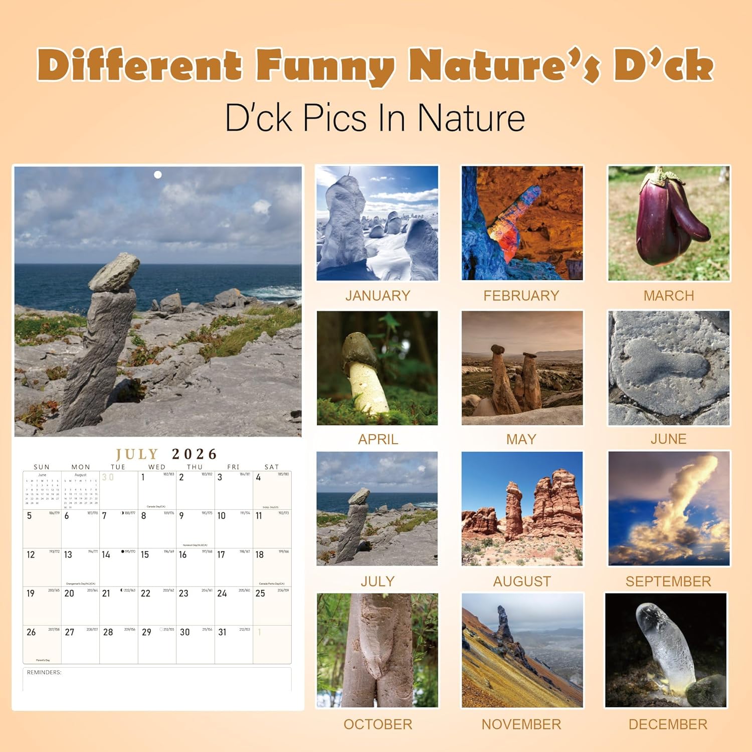Laugh & Therapeutic All Year Long: Each Month Of The Funny Nature Dongs Calendar 2026 Reveals A New And Absurdly Funny Take On Mother Nature, From Well-endowed Tree Branches To Rock Formations That Make You Blush. When Our Natures Dongs Calendar Works, It Will Save The Person Who Fallen off a Humor Cliff, So Don’t Miss out on The Laughter, Giggles, And Eyebrow Raises This Calendar Will Bring to Your Life