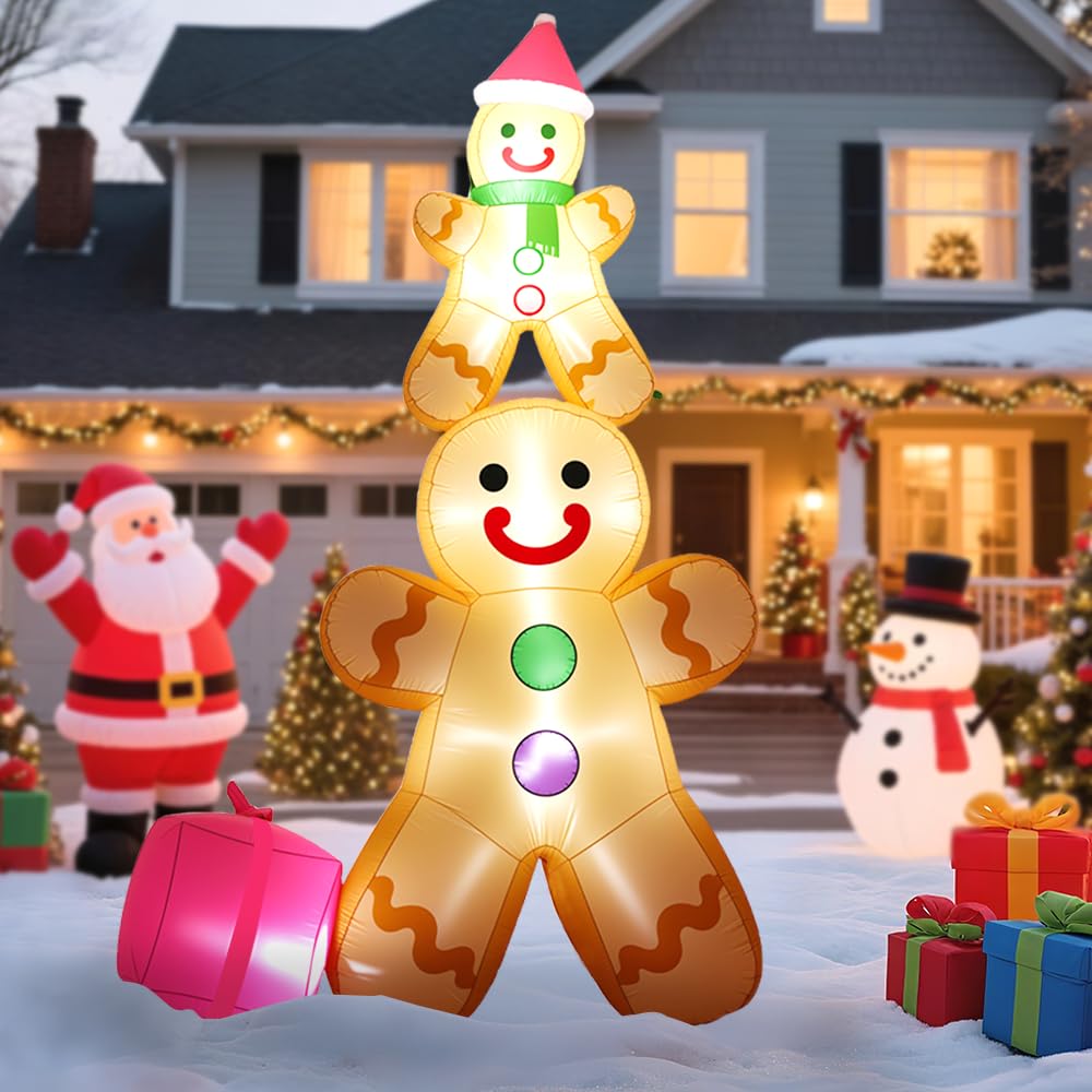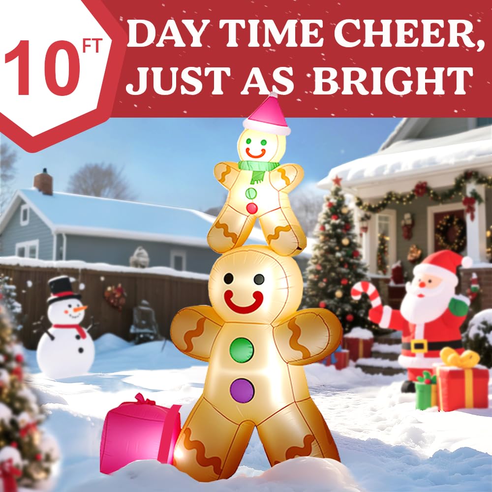 Inflatable Christmas Decorations:GARIG 10FT tall Christmas inflatable decoration is the perfect accent for winter Christmas events and New Year’s parties. The adorable father-and-son gingerbread man design creates a strong Christmas atmosphere.