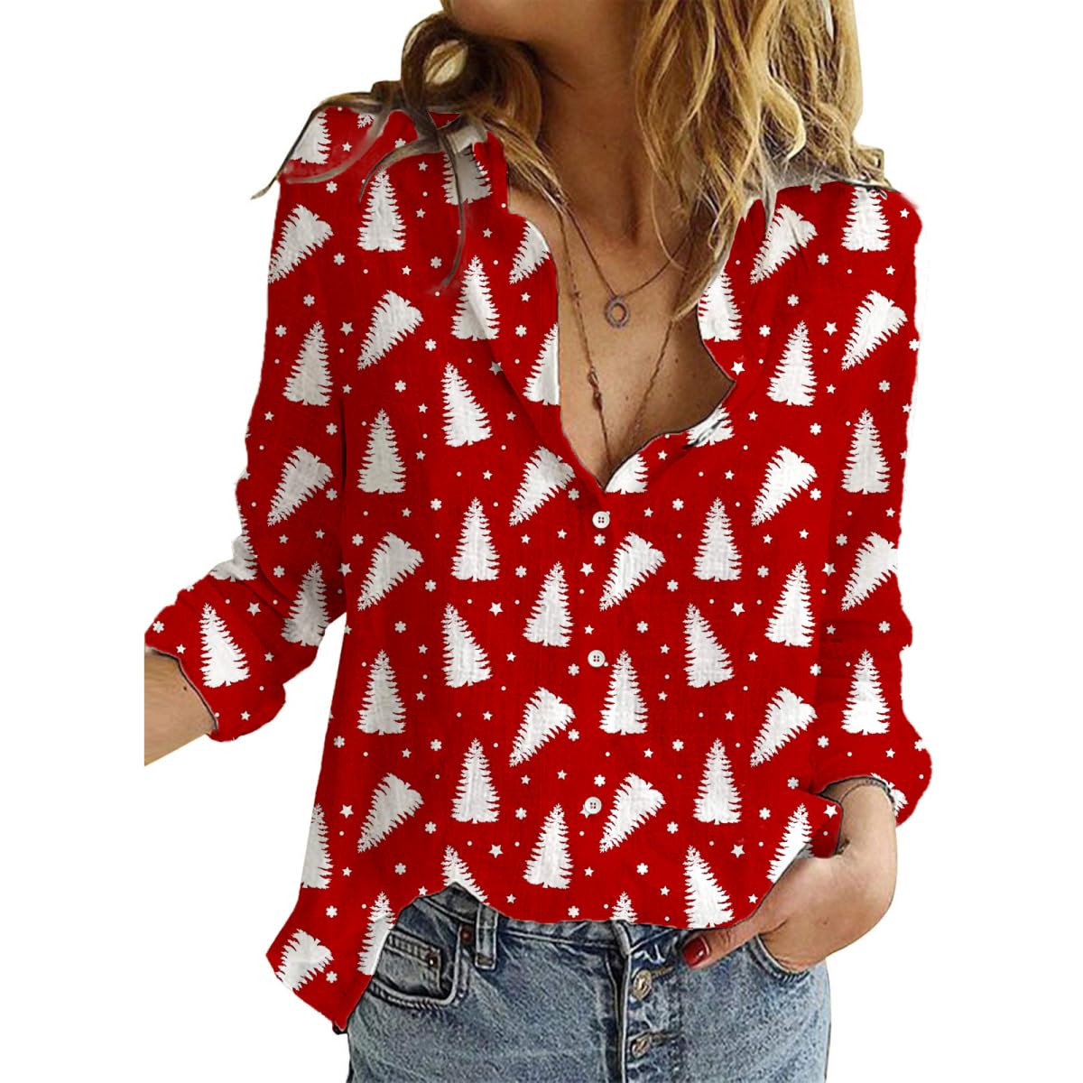 Features: Christmas shirts for women, button down shirts for women, novelty Christmas tree shirts, green shirts, v neck collared shirts, long sleeve blouse, red shirt, snowflake print graphic shirts, xmas tops, funny holiday shirts, womens tops dressy casual,bow shirts