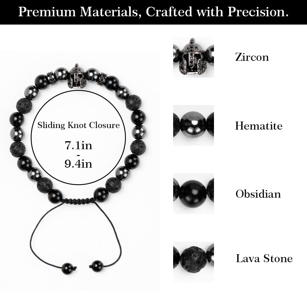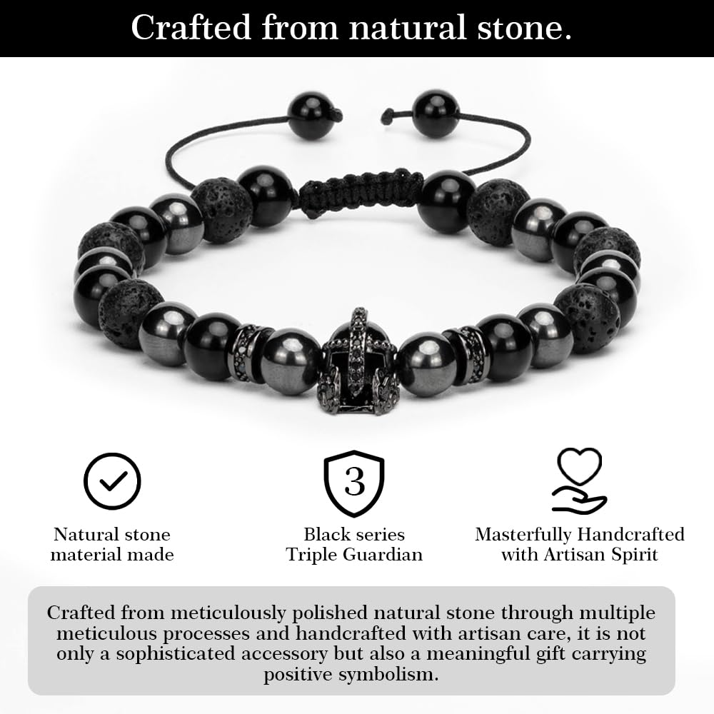 Material: Carefully crafted from natural Obsidian, Lava Rock, Hematite, and Tiger eye stone. We select high-quality natural materials to let you appreciate the inherent beauty of natural minerals together. The center of the bracelet is adorned with a black zircon-inlaid ornament, which becomes the highlight of this bracelet. The men’s jewelry with a niche and original design eliminates the worry of looking the same as others when worn.