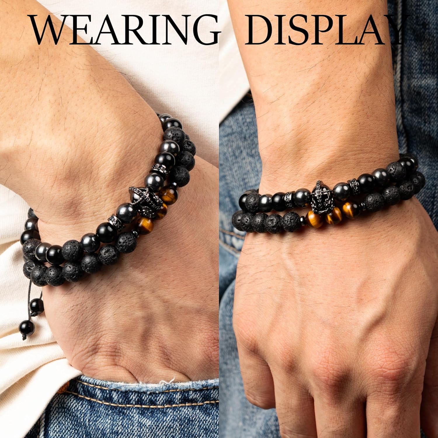 Size: This natural stone bracelet features an adjustable clasp design with an adjustment range of 7.1 inches to 9.4 inches, making it suitable for most men’s wrist sizes. The circumference of the wrist can be adjusted by changing the length of the extension cord at the end of the bracelet. It should be noted that this bracelet is also suitable for women to wear, but since its minimum size is 7.1 inches, it may be too large, and this size cannot be made smaller. Therefore, we recommend confirming your wrist circumference before purchasing.