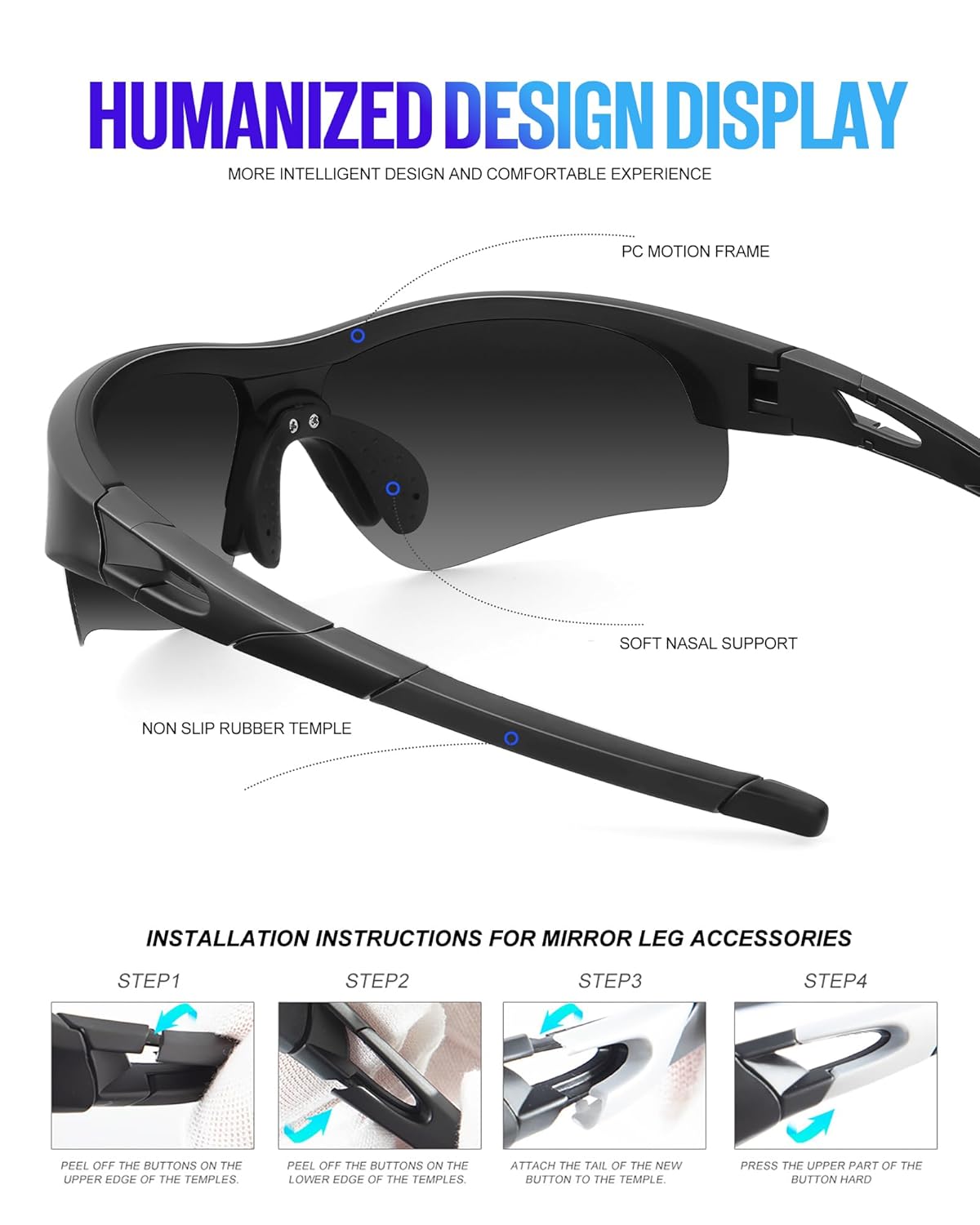 Super Lightweight: Comfortable and soft nose pad, Lightweight frame, all these will make you hardly notice you’re wearing these polarized sunglasses men! You can focus on your activity without any distractions. The baseball sunglasses for men is an ideal for baseball, softball, cycling, motorcycle, driving, running, skiing, climbing, hiking or other outdoor activities