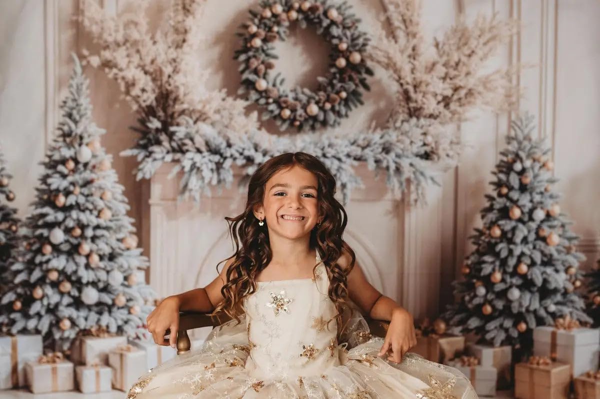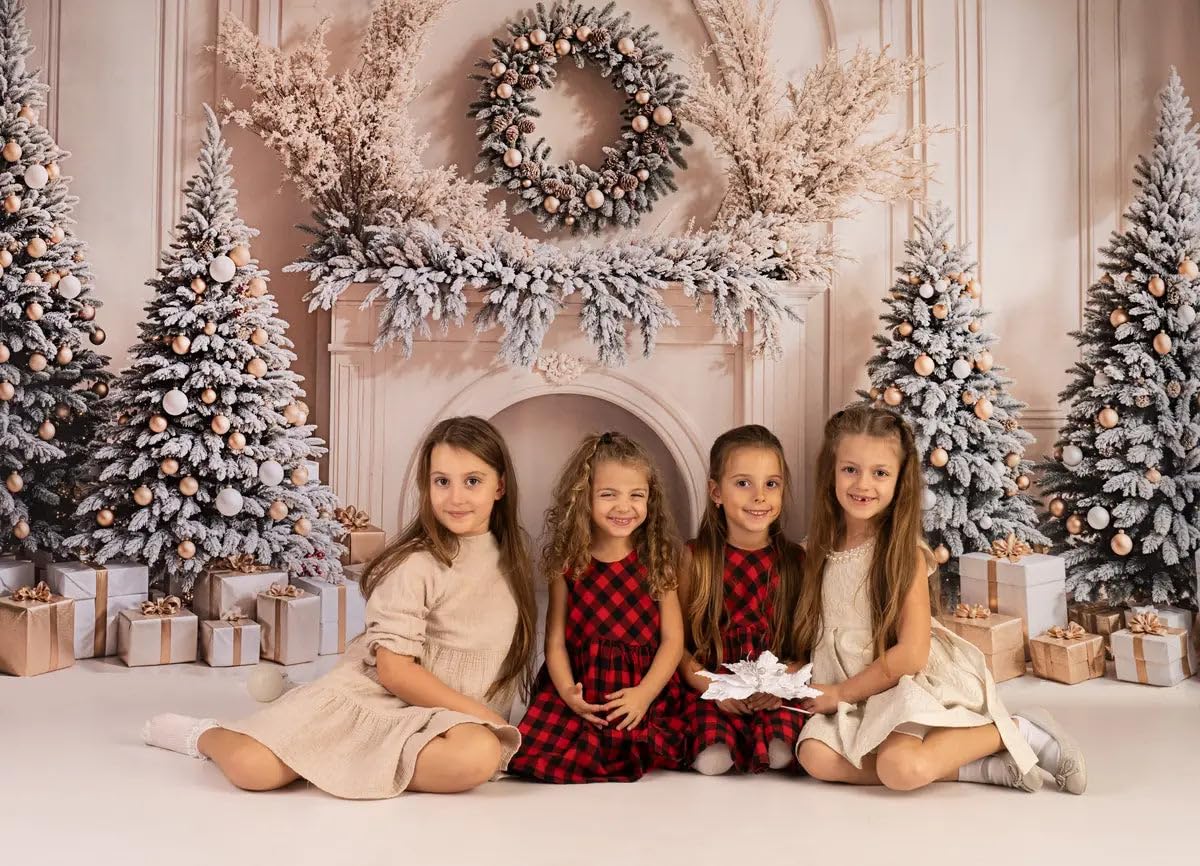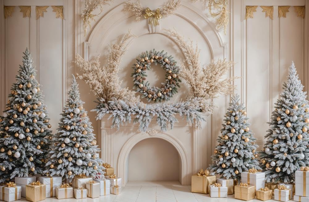 Specification: Kate Christmas Fireplace Photography Backdrops Boho Xmas Trees Gift Box Holiday Party Decor Suppllies Photo Props, 10×6.5ft