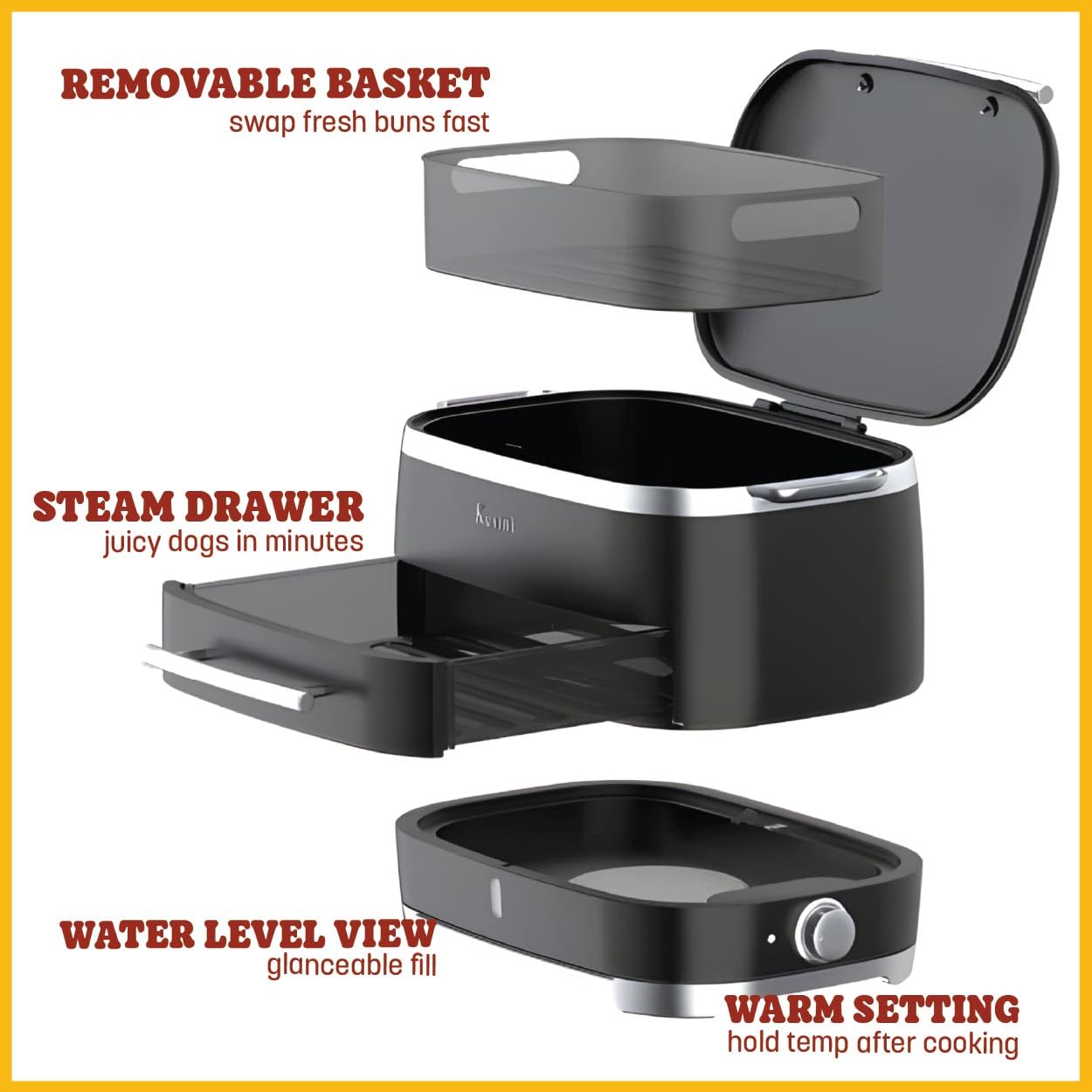 ENJOY FUN FAMILY TIME: Steam hot dogs for your next family get-together, movie night, or date night. Ideal for tailgate parties, carnivals, birthday parties, or game day.