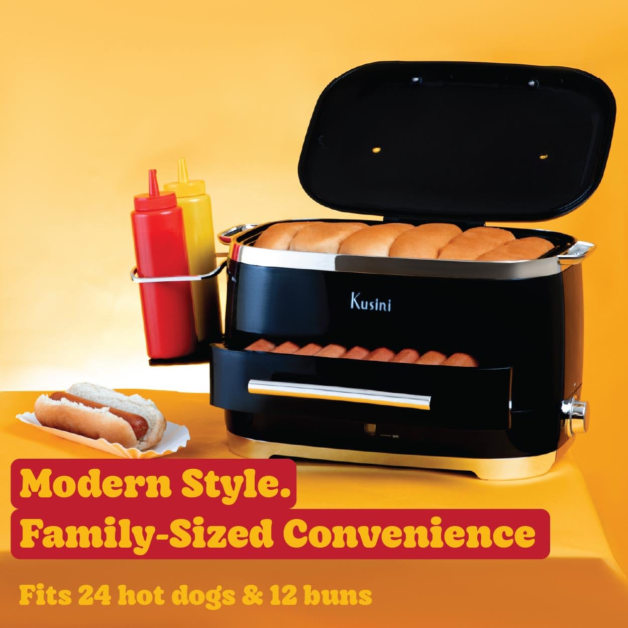 Kusini Hot Dog Steamer Machine With Bun Warmer, 24 Hot Dog & 12 Buns – Electric Food Steamer for Cooking Vegetables, Fish, & More – Unique Housewarming Gift Idea – Movie & Date…