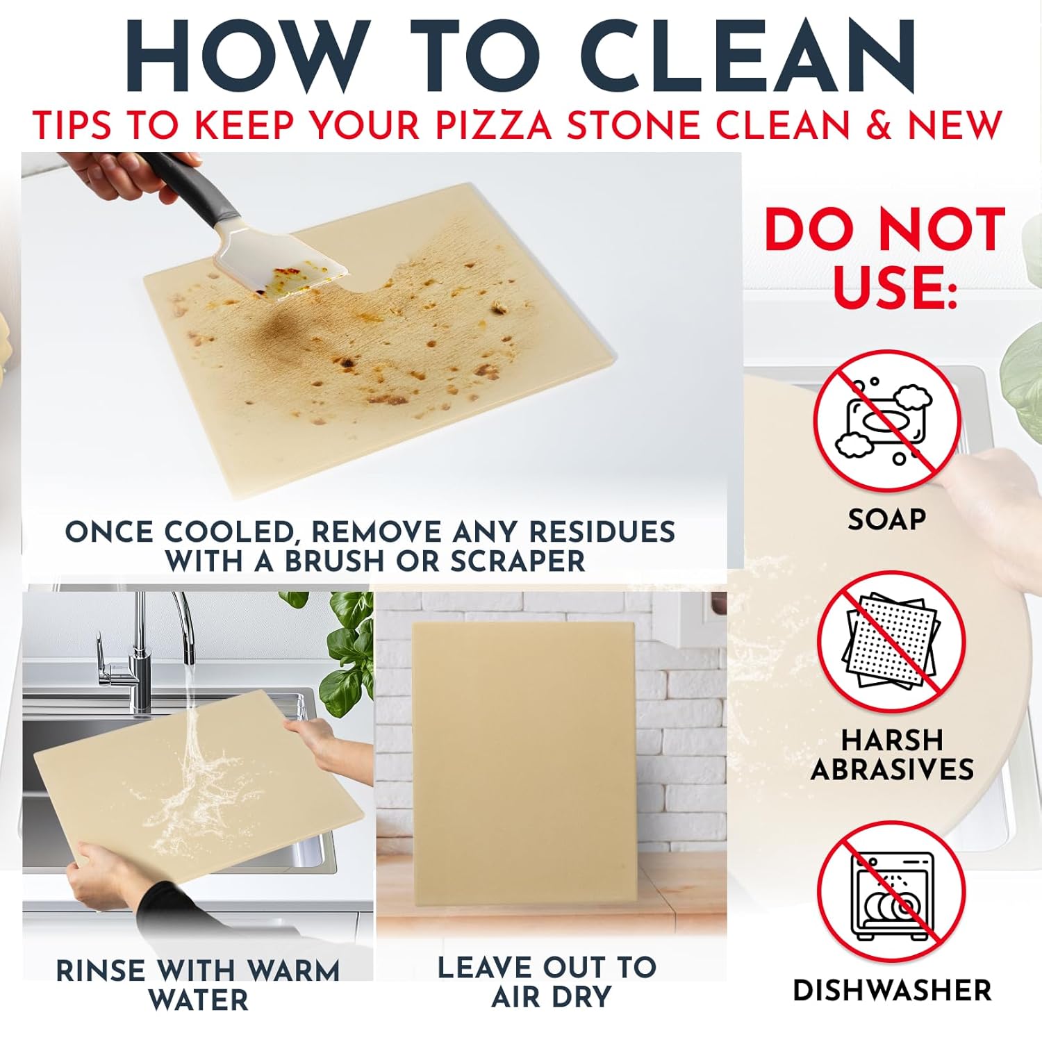Cleaning your pizza stone is simple and hassle-free. Just rinse with warm water and let it air dry—no need for scrubbing or harsh detergents. Designed for ease of use, this stone will quickly become a staple in your kitchen.