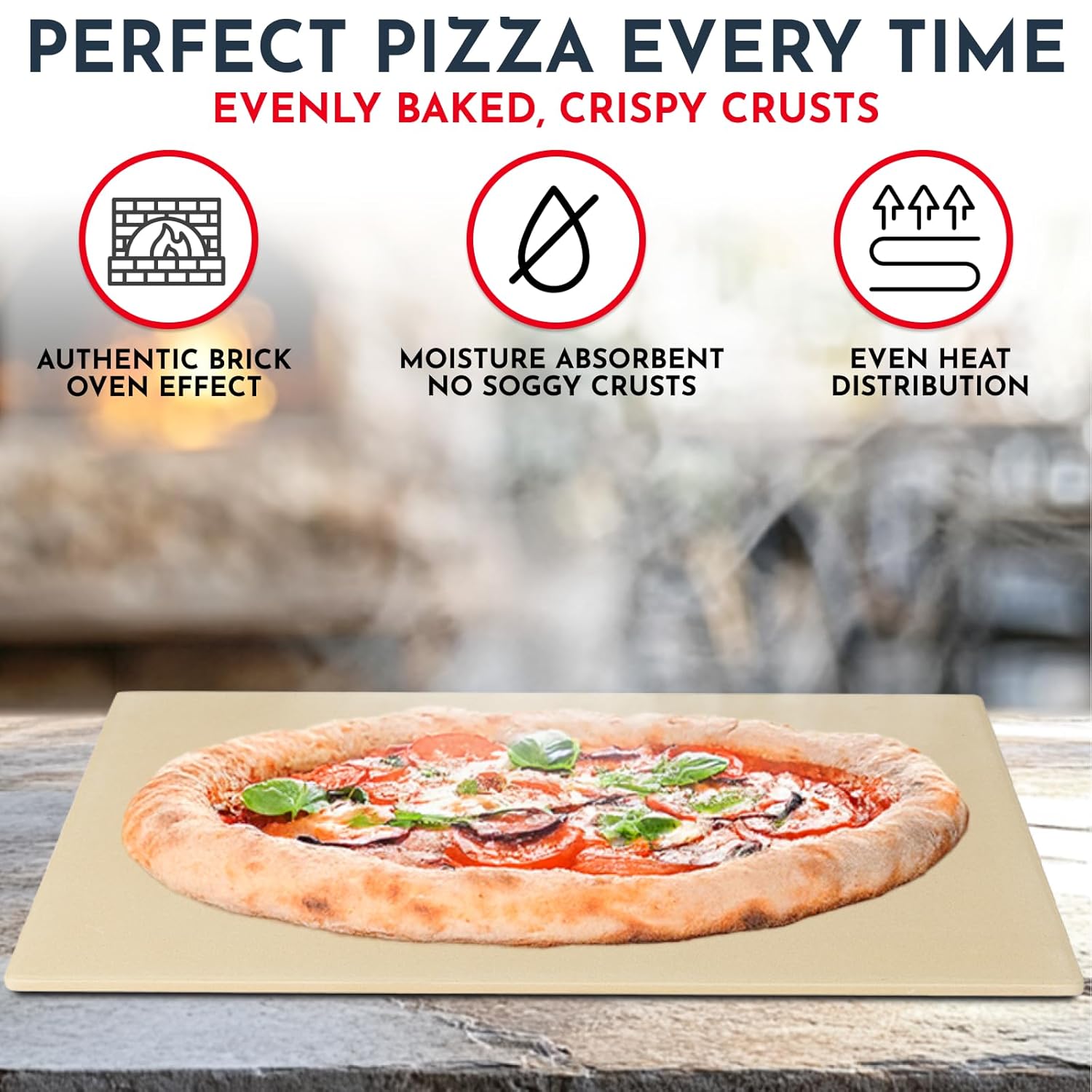 Achieve Perfect Pizzas Every Time – With irresistibly crispy crusts using Culinary Couture’s premium pizza stones for grill and oven. The stone’s porous surface absorbs excess moisture, ensuring your crust remains crisp and never soggy.