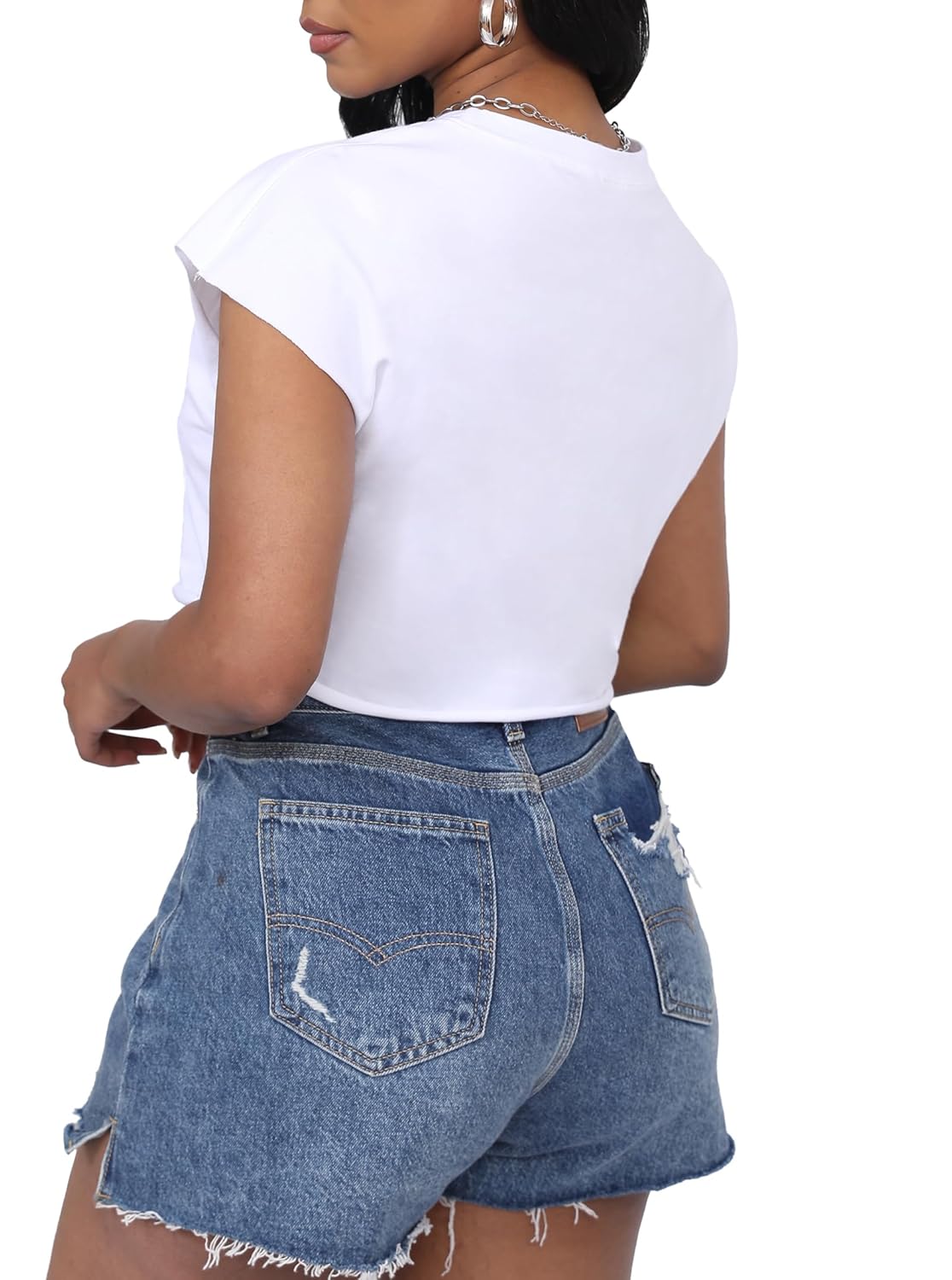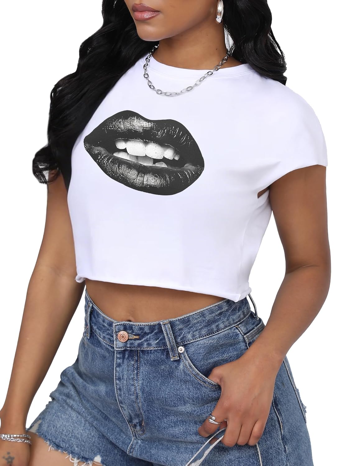 8 reviews for LovelyWholesale Womens Cropped Graphic Tees Cap Sleeve Tops Summer Short Sleeve T Shirts