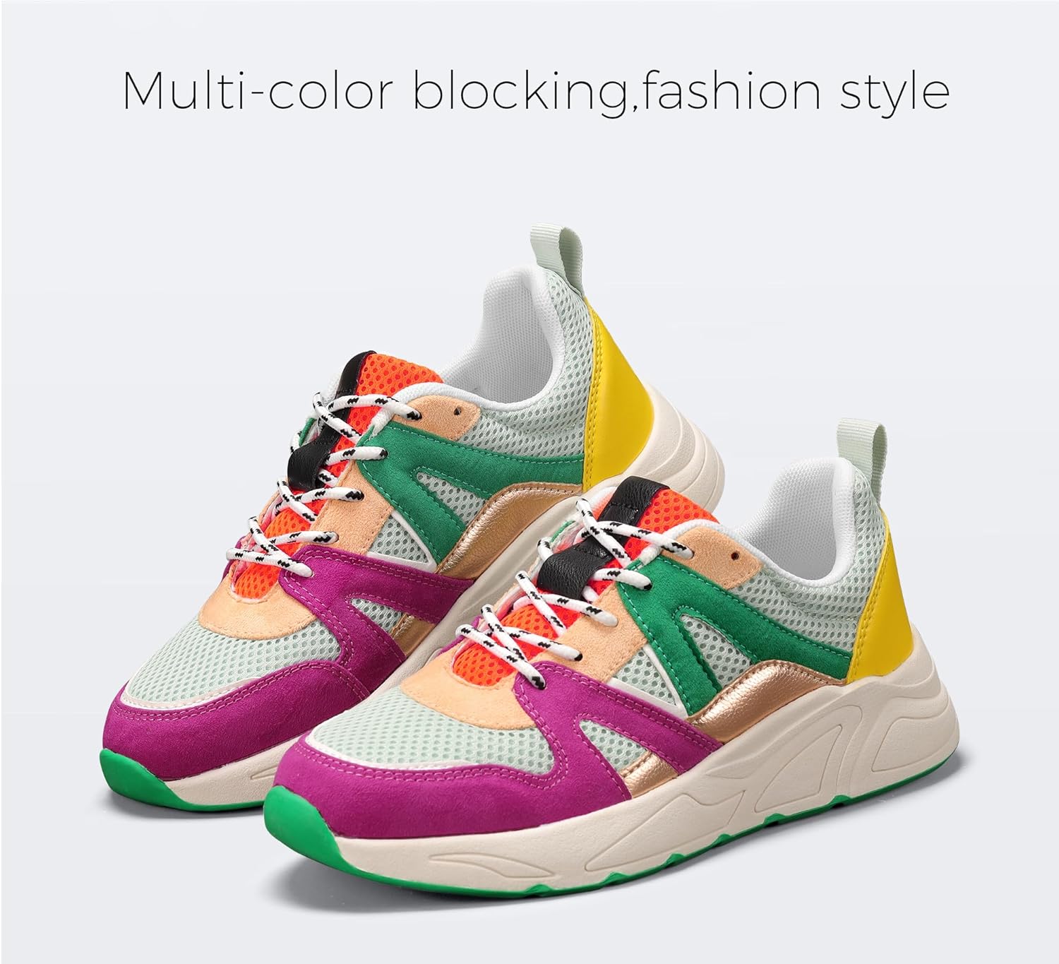 【FASHION DESGIN】: The stylish sneaker is inspired by the 90s, throwback design mixes with modern tech, with a confident design and collision of multiple colors increase the retro vibes.