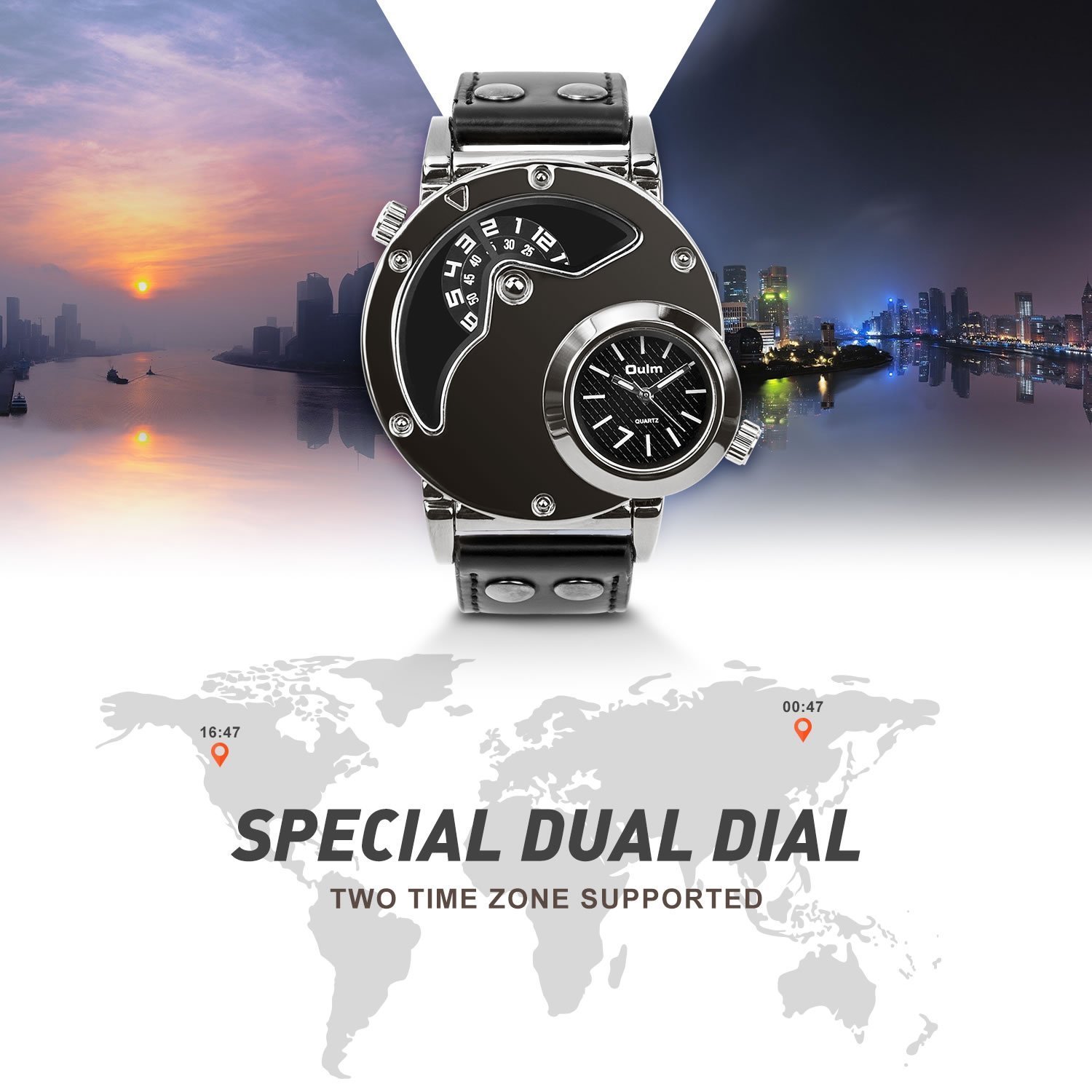 • UNIQUE DUAL DIAL DESIGN (WATCH FACE IS BLACK): special upscale dual dial cool design, first dial show time with two circle coaxial rotary scales, second dial show time by analog.