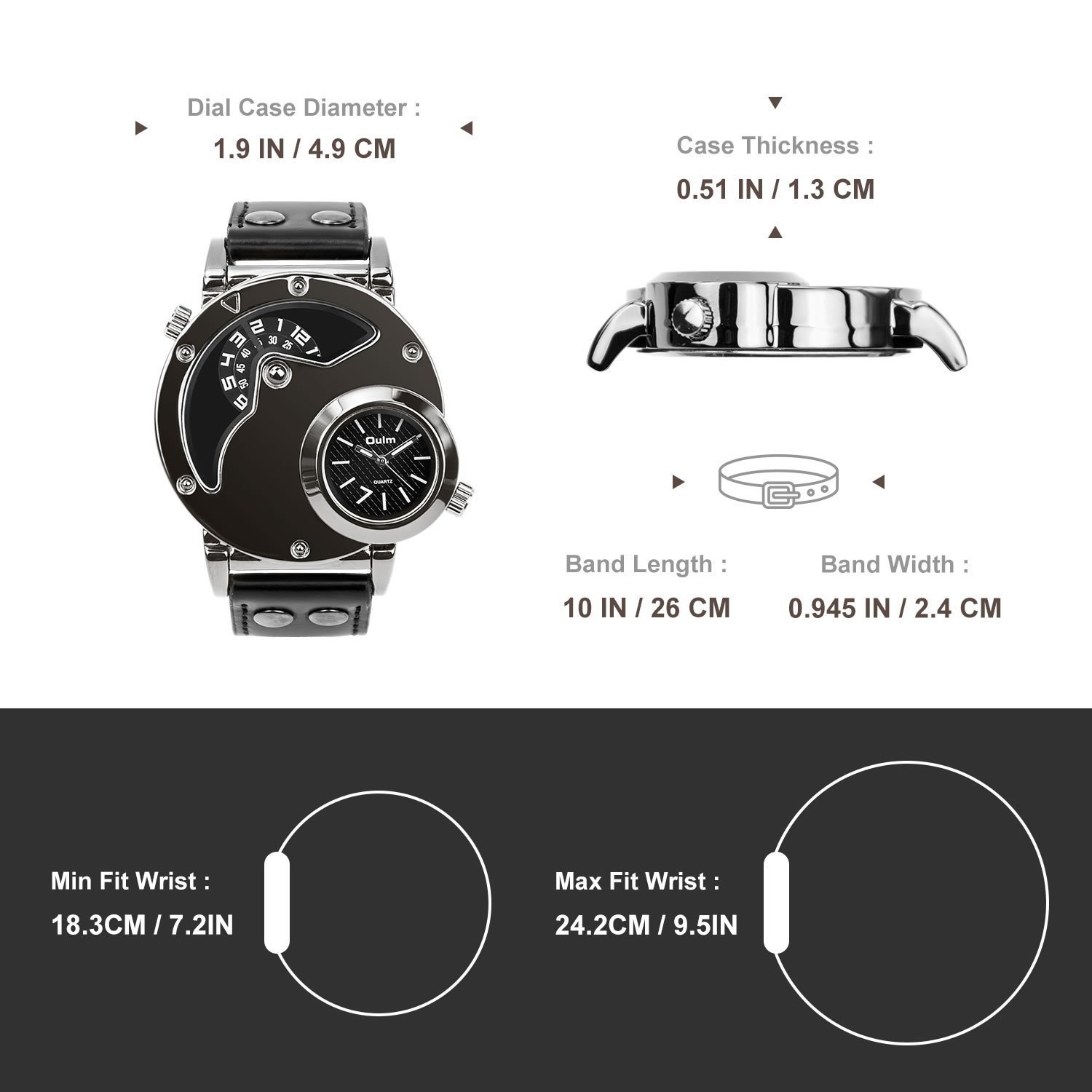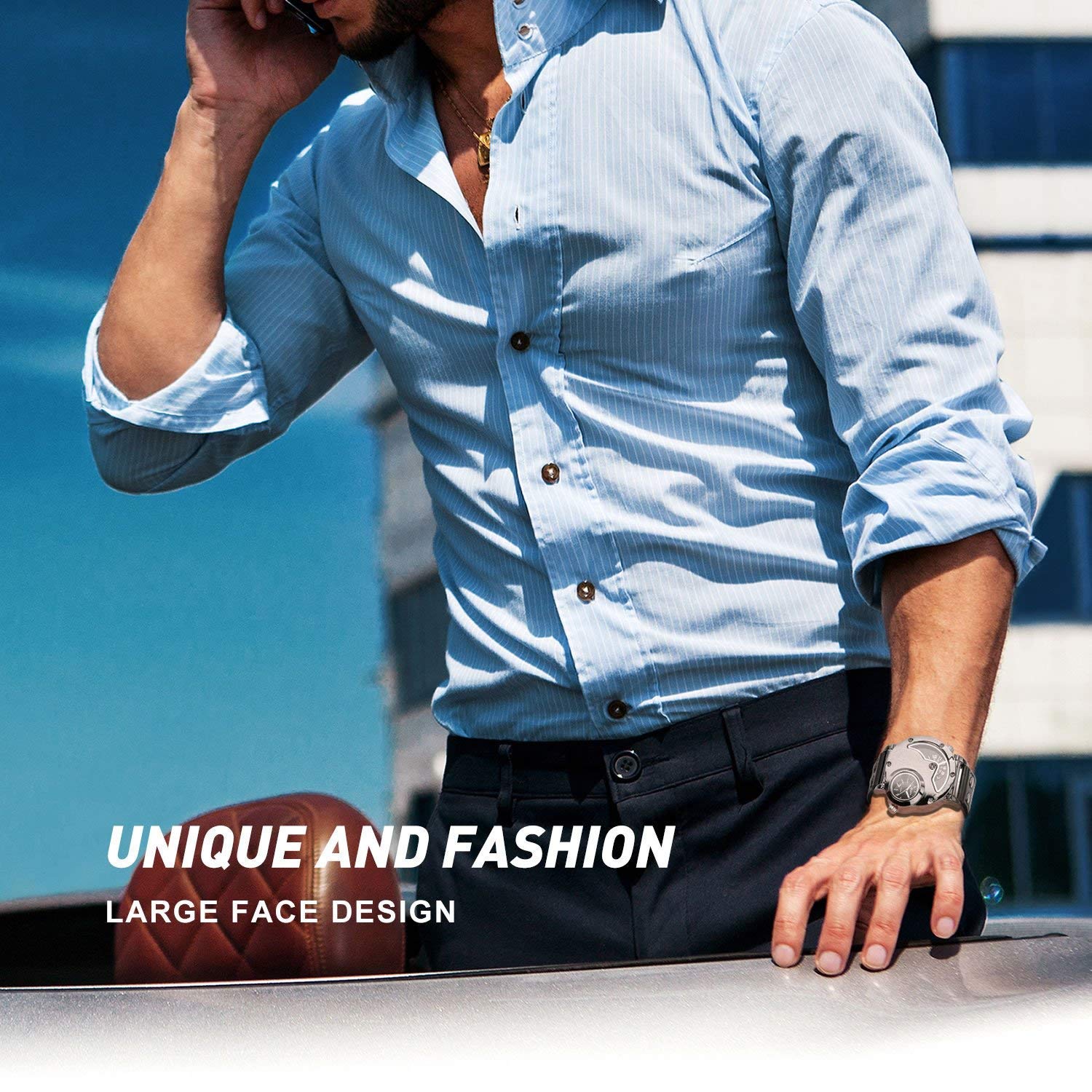 Specification: Men’s Unique Analog Watch, Waterproof Fashion Dress Quartz Wrist Watch with Dual Dial Cool Design Leather Band Dual Time Watches