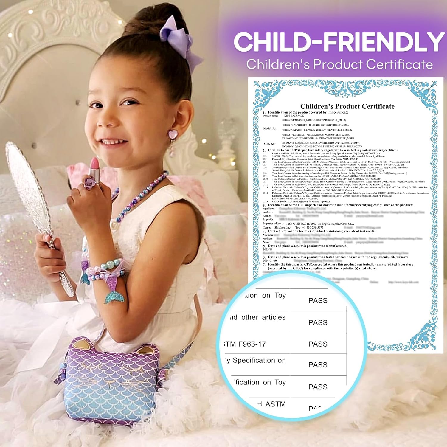 Dress up Girl Toys Jewelry: This girls purse come with 1 pair of clip-on earrings, 1 heart-shaped ring, 1 bow-knot hair clip, and a set of matching colorful mermaid beaded necklace and bracelet.Princess dress up for girls 4-6, Girls toys age 4-5, 6-8.