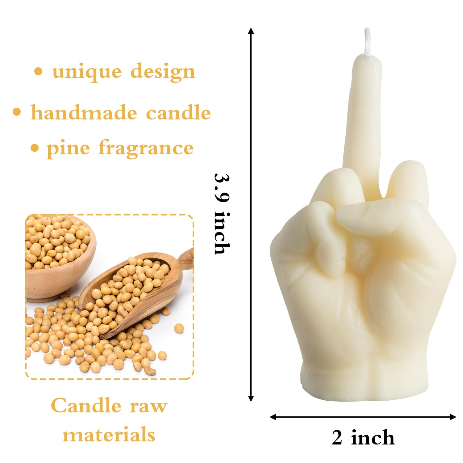 Size and Material: About 2 * 3.9 inches. The middle finger candle is made of natural soy wax and wick. The materials are safe and reliable. When the candle is burning, the fragrance released can make people feel comfortable.