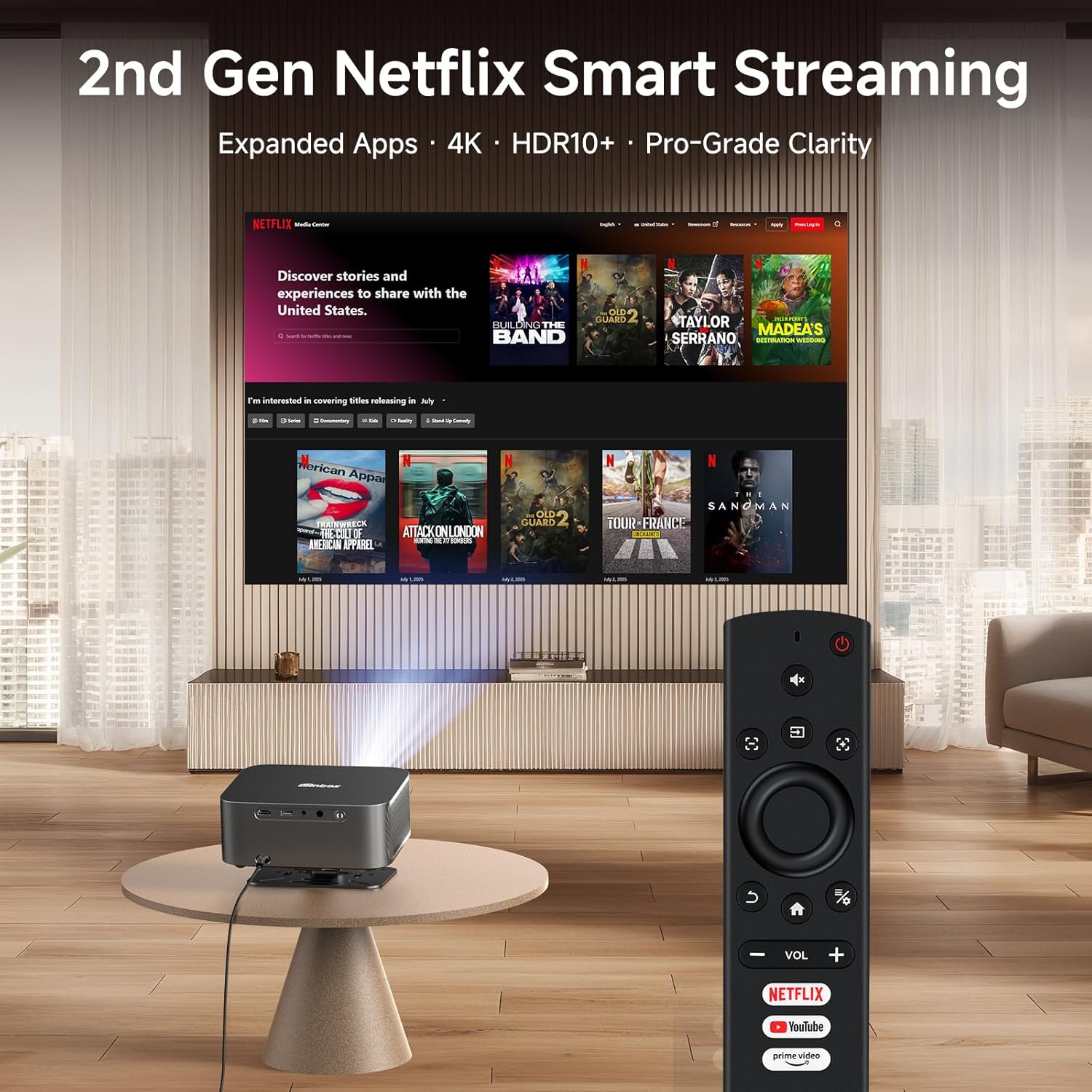 4K Support Projector with Movin Smart Operating System, AI-Powered Visuals – 1200ANSI, 4K Support & HDR10+, Auto-Focus & 6D Keystone, Auto Screen Alignment, Compatible with Netflix& Dolby & DTS Audio, Powered by the MTK9660 Chip