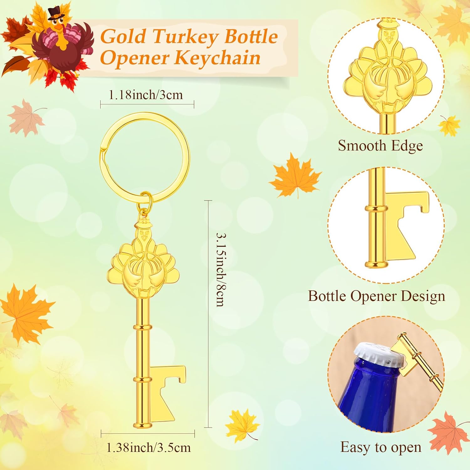 Specification: 24 Sets Happy Friendsgiving Gifts Thanksgiving Gold Turkey Keychain Fall Bottle Opener Beer Beverage Can Friendsgiving Party Favor for Guest Autumn Party Souvenir