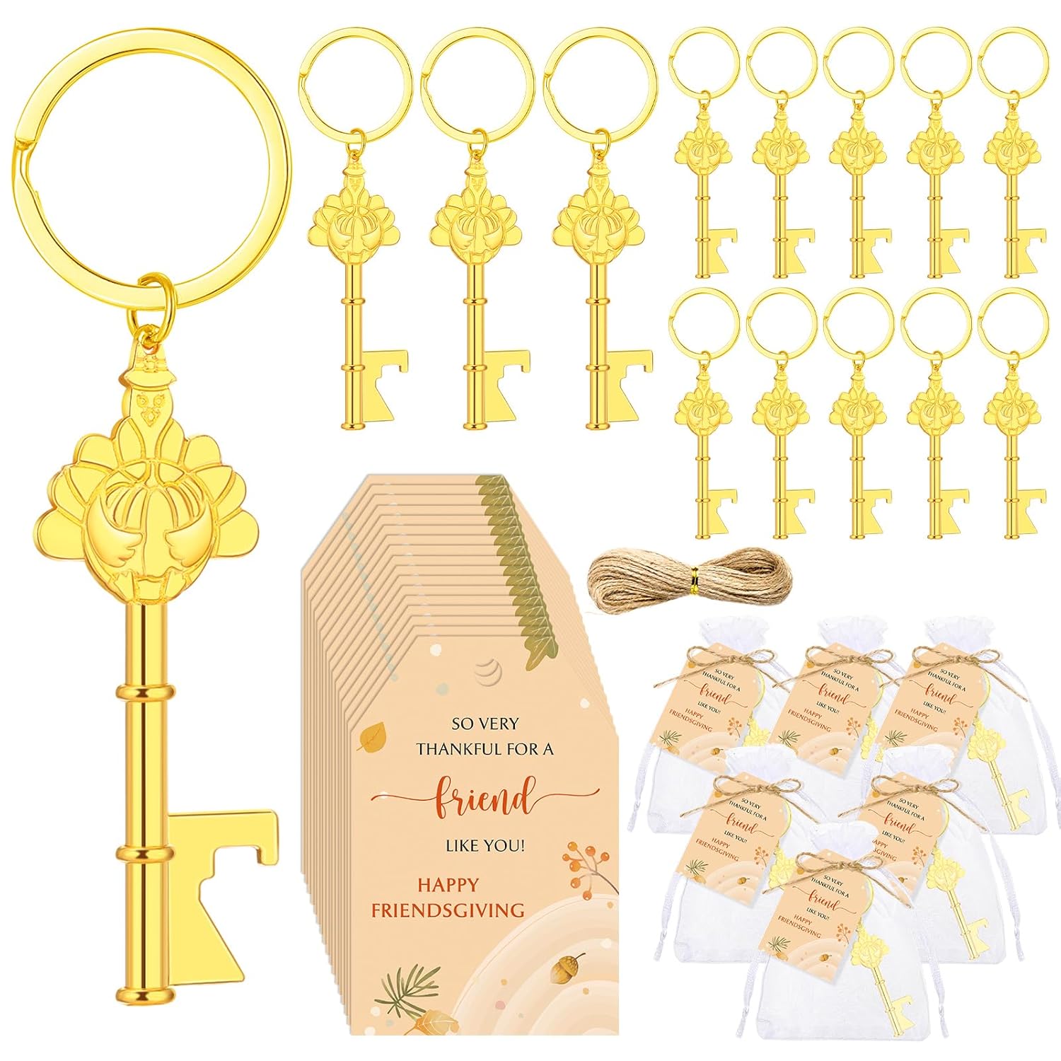 9 reviews for 24 Sets Happy Friendsgiving Gifts Thanksgiving Gold Turkey Keychain Fall Bottle Opener Beer Beverage Can Friendsgiving Party Favor for Guest Autumn Party Souvenir