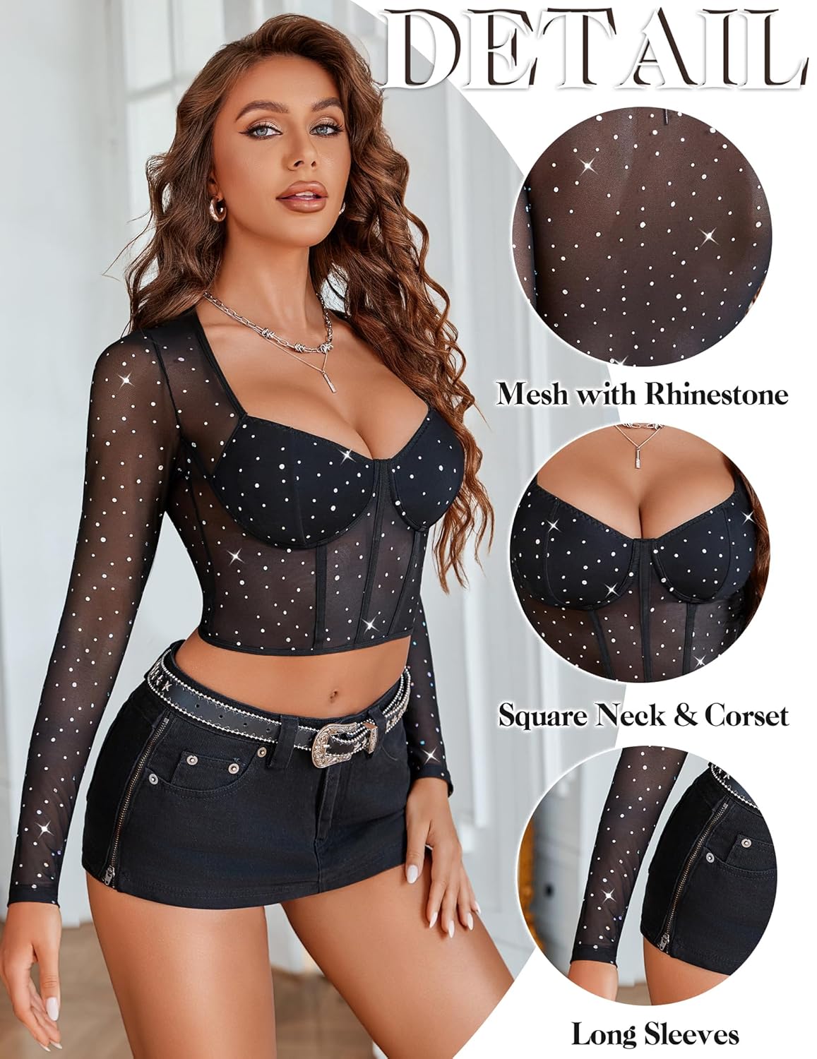 15 reviews for Avidlove Women Mesh Tops Long Sleeve Sparkle Crop Top Square Neck Y2K Date Night Outfits S-XXL