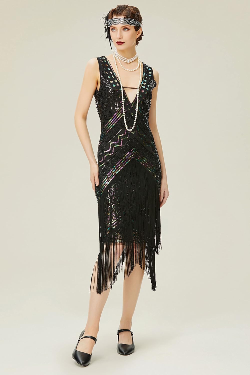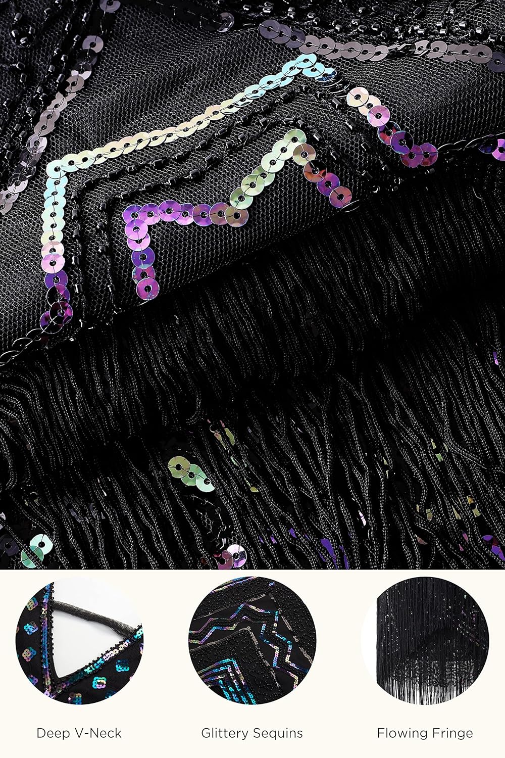758 reviews for BABEYOND 1920s Flapper Dress V Neck Sequin Beaded Dress Roaring 20s Gatsby Fringe Party Dress