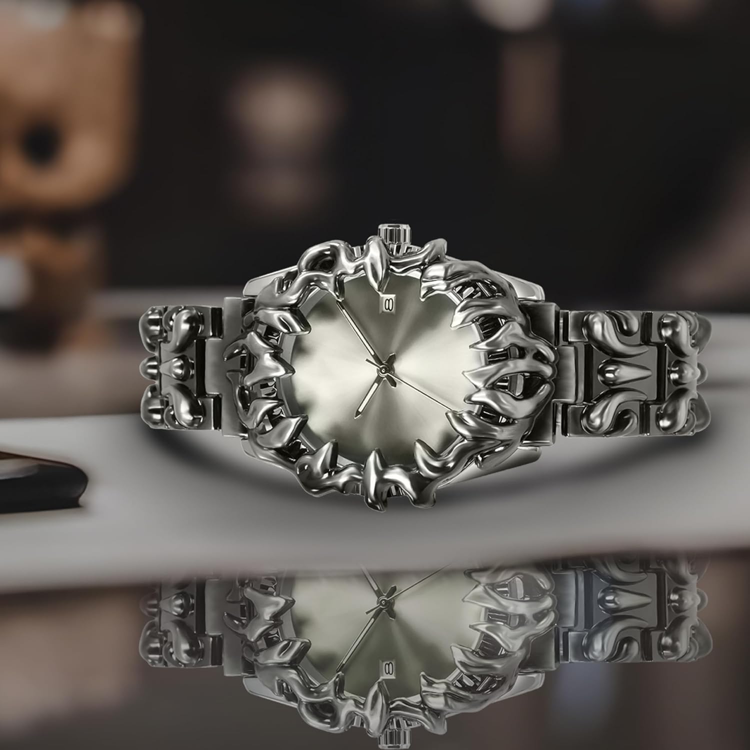 Unique Design: This men’s retro watch features unique carved decorative patterns extending across the stainless steel bracelet, bezel and case sides. The cool minimalist dial with unusual hands creates a dazzling vintage-inspired timepiece perfect for stylish men’s fashion