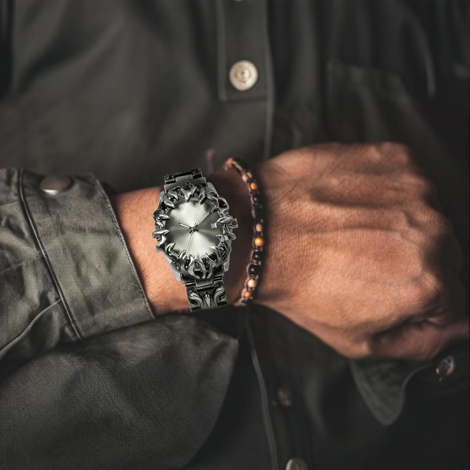 1 review for BARAMON Watch for Men Retro Fashion Vintage Wristwatch Casual Gothic Steampunk Quartz Analog Hand Watches Hip Hop Cool Alien Y2K Male Clock
