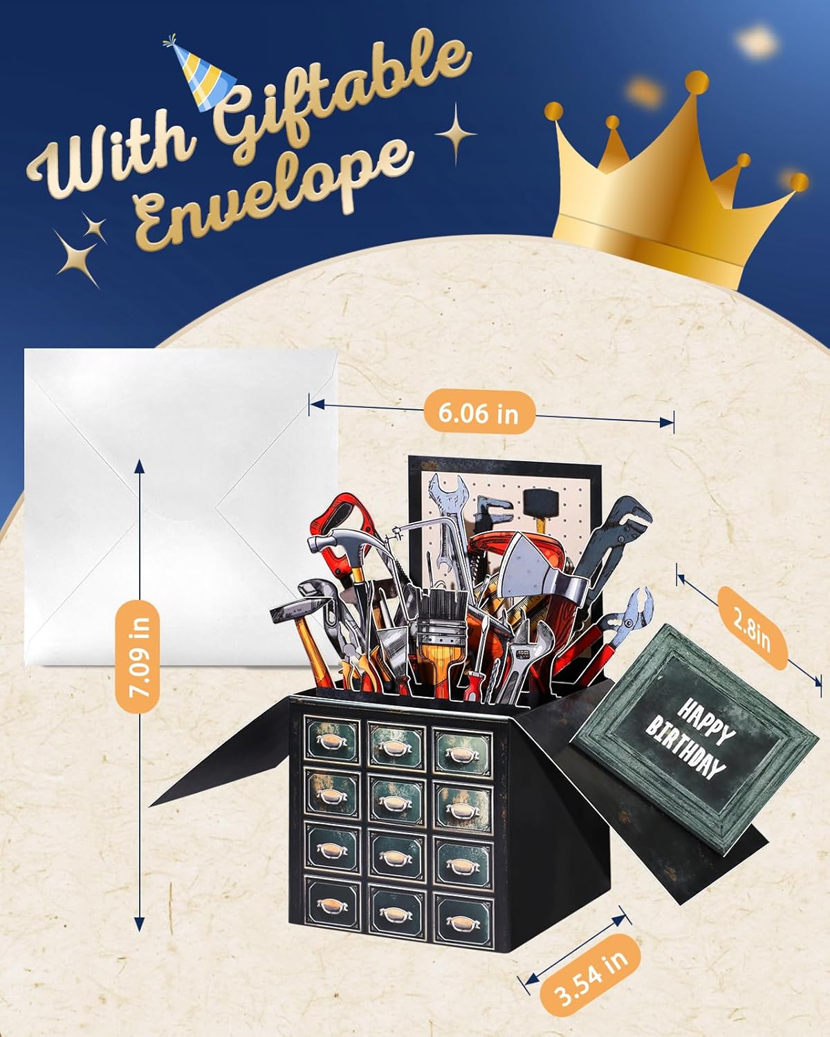 Specification: Birthday Pop Up Card with Envelope – Funny Happy Birthday 3D Greeting Pop Up Card, Best Gifts for Men Dad Husband Grandpa Father Daddy Him, Unique 3D Design, Metal Toolbox