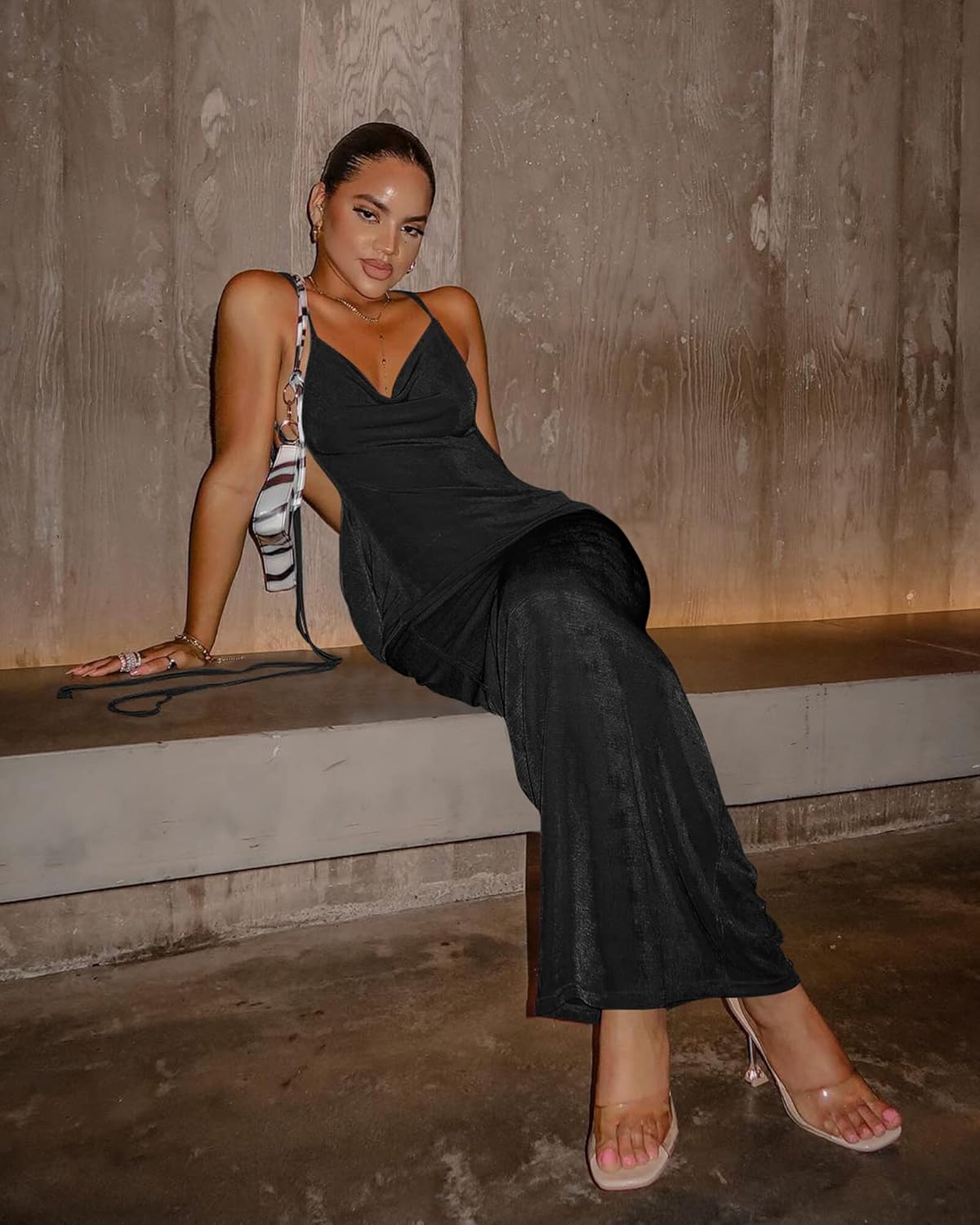 Birthday dresses for women 2025: The straps in this club dress extend from the front to the back, emphasizing the graceful line of the back and showing off an elegant and sexy figure that will make you stand out from the crowd. The neckline is a cowl neck design that reveals an attractive collarbone line. A delicate ladies dress! There are 2 binding methods for Spaghetti Strap, which can be selected at will, and the straps are adjustable to give you more natural look.