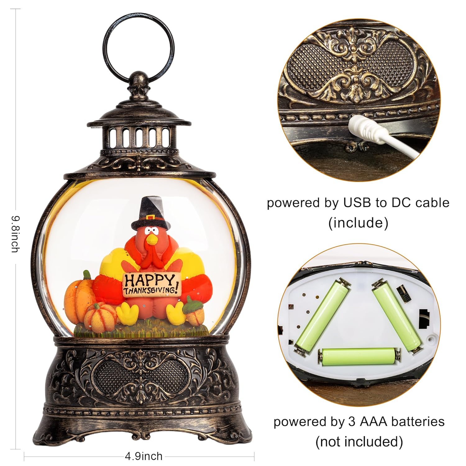 Specification: Fall Decor Turkeys Snow Globe Lantern, Thanksgiving Decoration Indoor Tabletop Centerpiece, Swirling Glitter Pumpkins Snow Globe with Turkey, Harvest Day Gifts, Home Fall…
