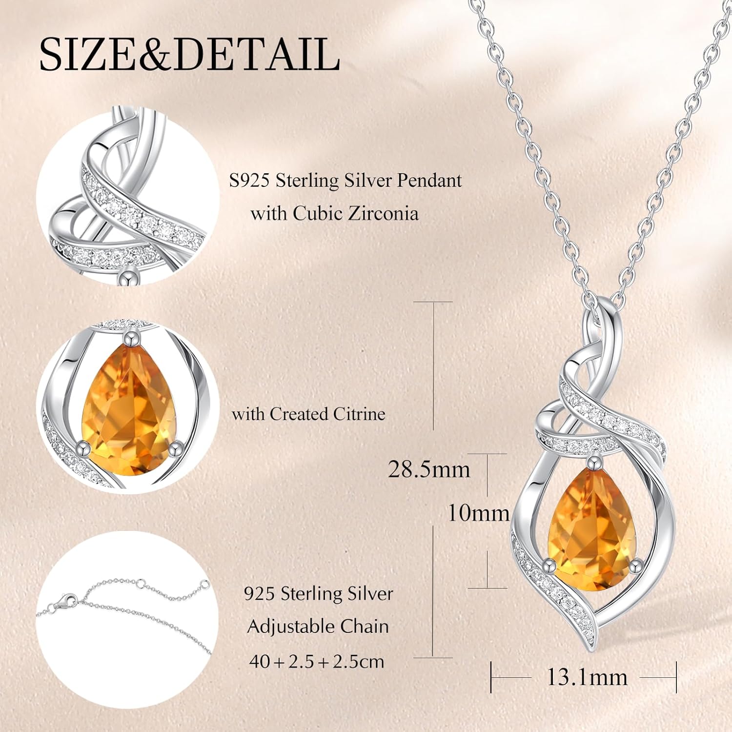【November Birthstone Necklace】Citrine gemstone means sincere and affectionate love.You can also choose your favorite gemstone color to match any style.