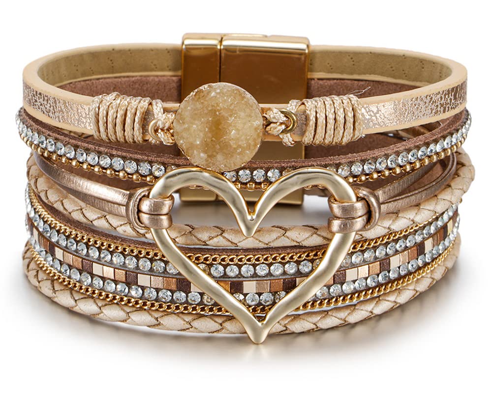Love this bracelet. Fits well and is really cute and stylish. It has enough sparkle to it but not overdone. The magnetic clasp is sturdy. If you’re looking for a chunky bracelet to add to your outfit this is perfect!