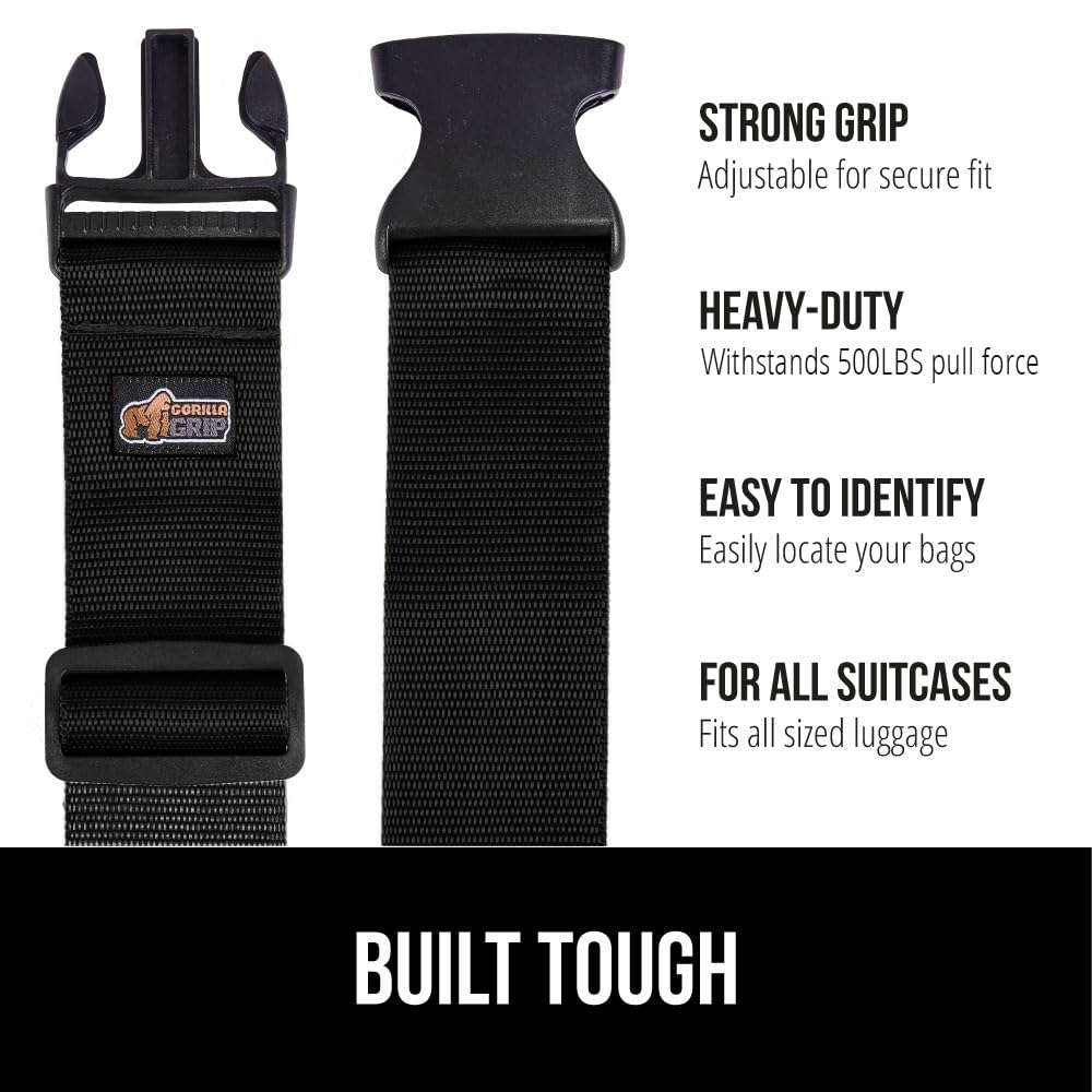 GORILLA GRIP Heavy Duty Adjustable Luggage Straps for Suitcases, Easy to Identify Travel Belt Connector Holds Suitcase Together, Extends Life of Bag, Strap Connects Two Bags,…