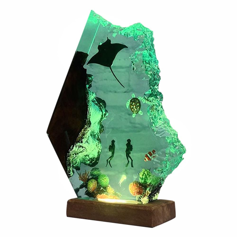 41 reviews for Handmade 3D Ocean Resin Lamp – USB Powered Resin Ocean Night Light with Wooden Base, Variable Lights, Scuba Diver Gifts, Diving Enthusiast Collectibles, Unique Thanksgiving Day…