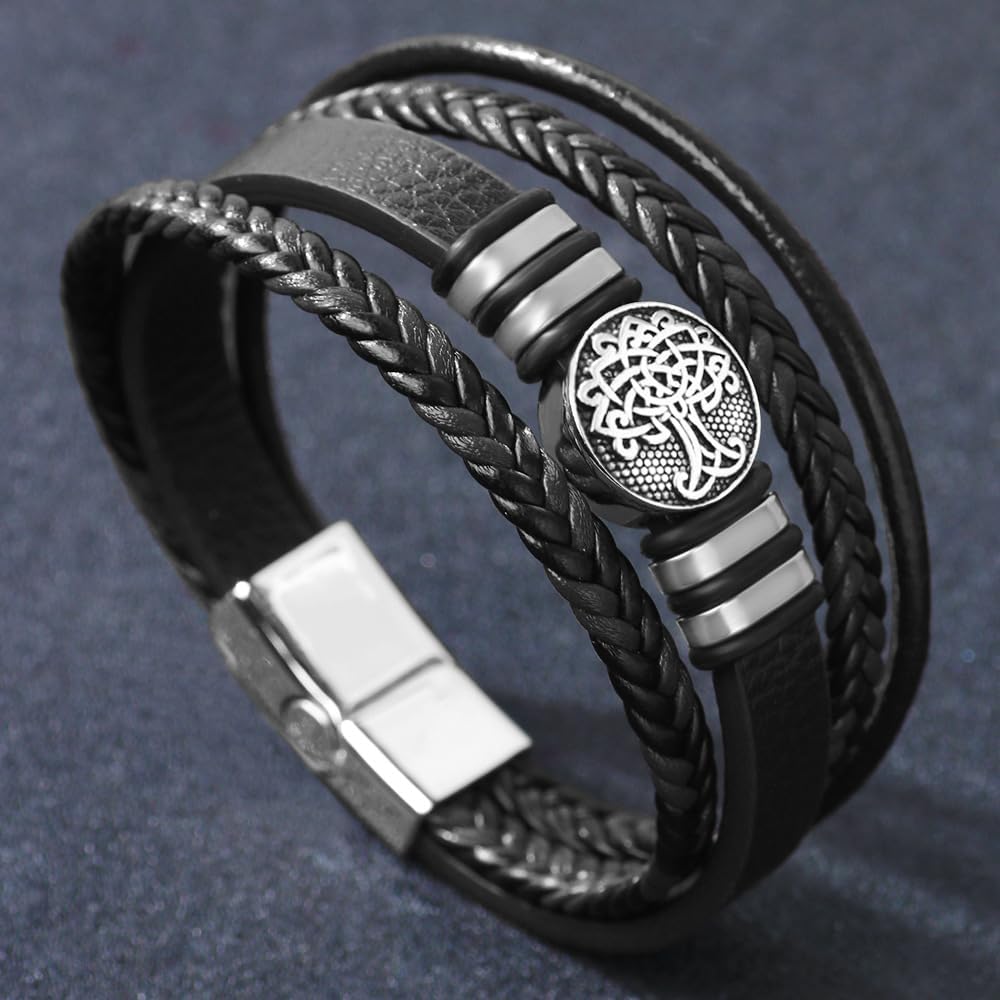 Mens Leather Bracelet with Multi-Layer Braided Leather Mens Bracelet Valentine’s Day Gift