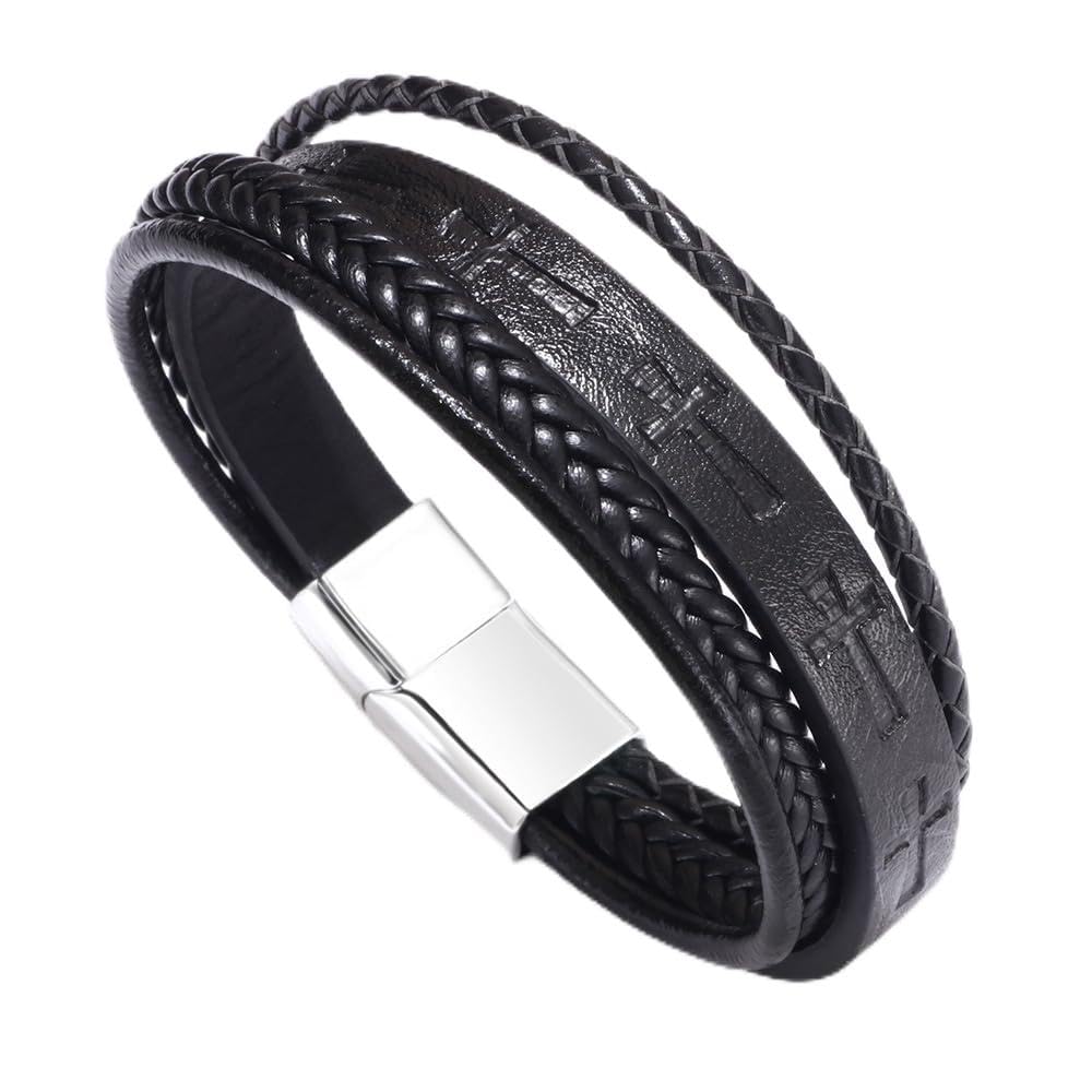 • 【Quality】Crafted with high-quality Stainless Steel & Genuine Leather, which is also being resistant to tarnishing and corrosion,this mens bracelet is designed to last a lifetime.Multi-layer genuine leather mixed the braided rope.Special internal clasp, slot and pin arrangement, easy put on without falling off.