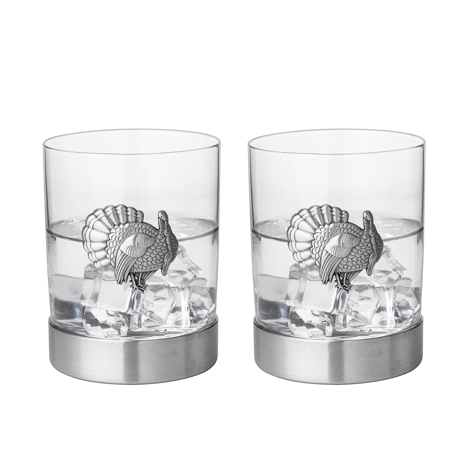 Set of 2 Turkey Whiskey Glasses with Pewter Badge – Old Fashioned Glasses for Bourbon, Rum, Brandy or Scotch – Pheasant and Quail Hunting Gift for Men or Women – Everyday…