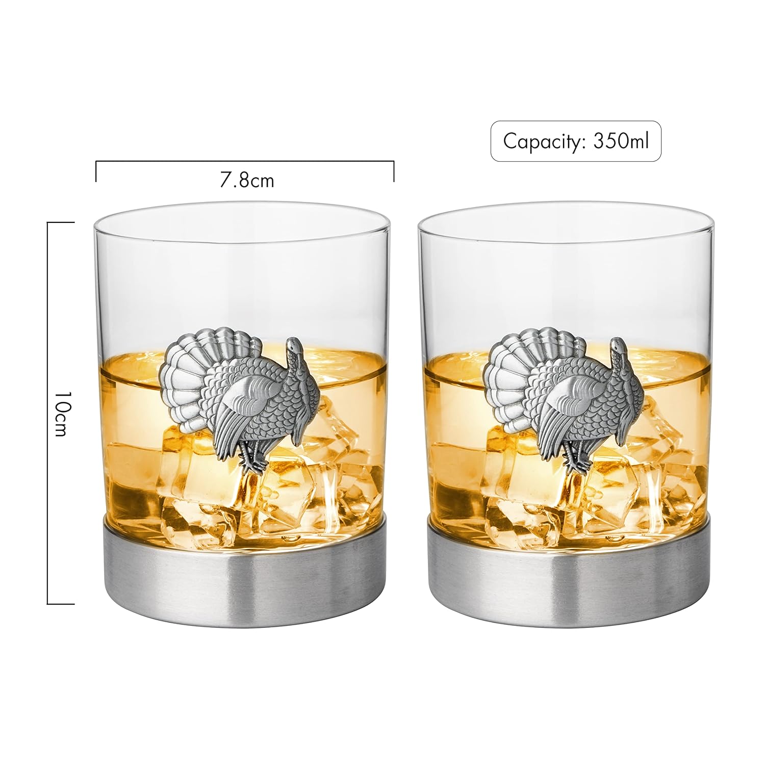 • THE NEW & UNIQUE TURKEY OLD FASHIONED WHISKEY GLASSES: The Turkey Old Fashioned Whiskey Glasses Set of 2 is unlike any other whiskey glass currently on the market. It features a unique turkey design raised and centered in the middle of the glasses. The turkey design is perfect for the animal lover who enjoys a nice cold glass of whiskey after a long day.