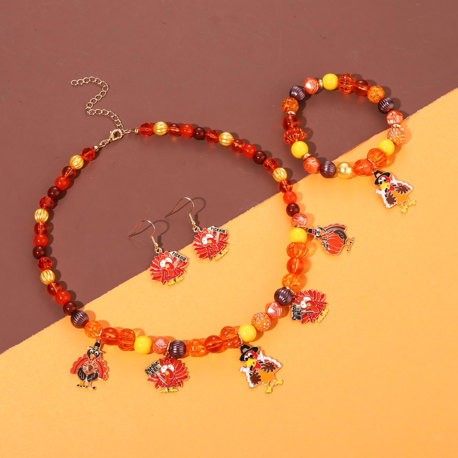 • ★ Turkey Necklace Earrings: On Thanksgiving, the turkey represents the feeling of gratitude and misses the days when people shared the joys and sorrows. Whether you’re getting all dolled up for this holiday or you just want to add more gratitude into your life, our beaded Thanksgiving necklace bracelet set can help remind you that your life is a gift