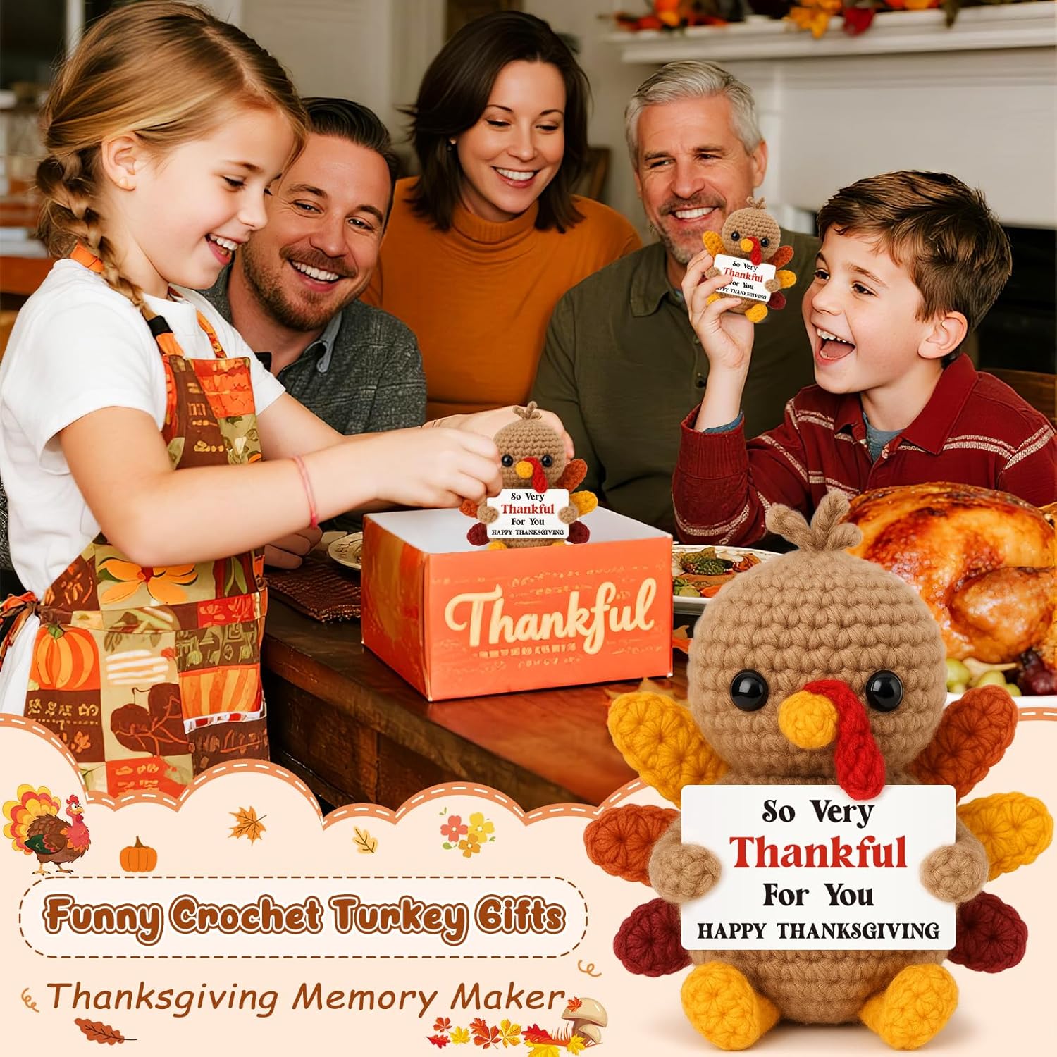 • Funny Crochet Turkey Gifts: Whether as party favors, daily prizes, or family gathering gifts, this tiny buddy sparks joy as children giggle, play, and carry home a sweet holiday memory. Soft and adorable, it’s the perfect Thanksgiving crafts