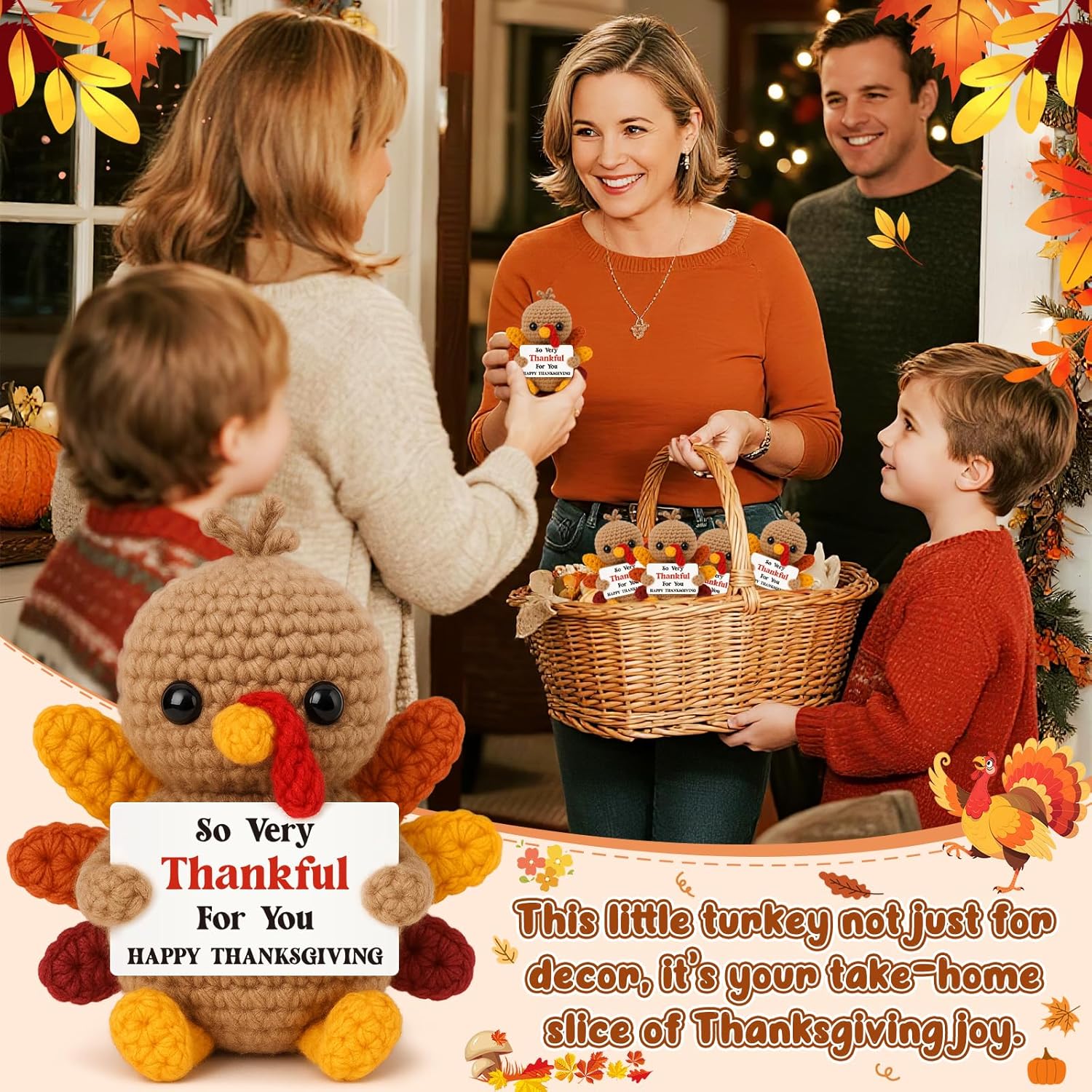 Specification: Thanksgiving Gifts for Women Handmade Crochet Turkey Women Family Adults Hostess Friend Happy Holiday Thanksgiving Card Party Favors Activities Crafts Basket Dinner Table Fall…