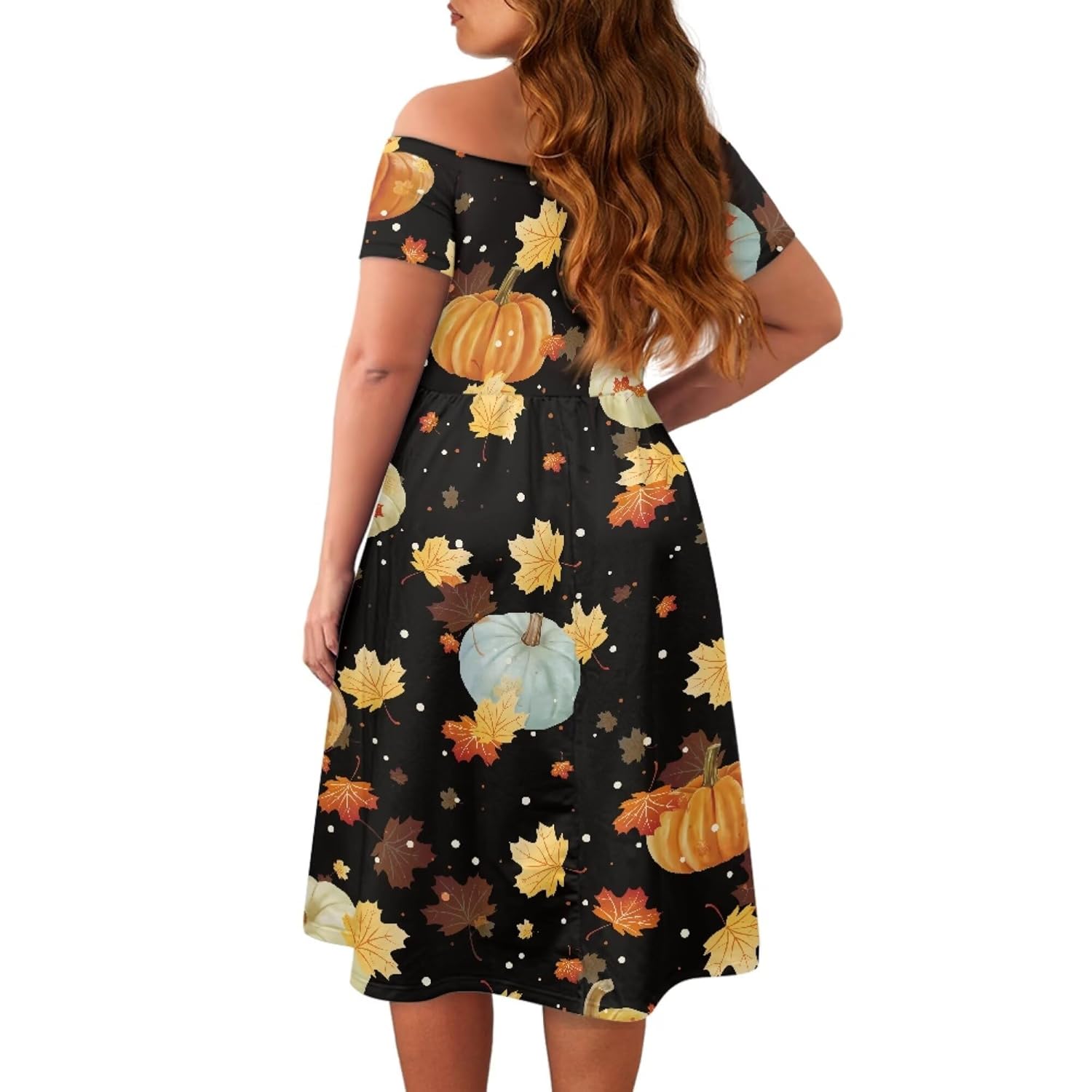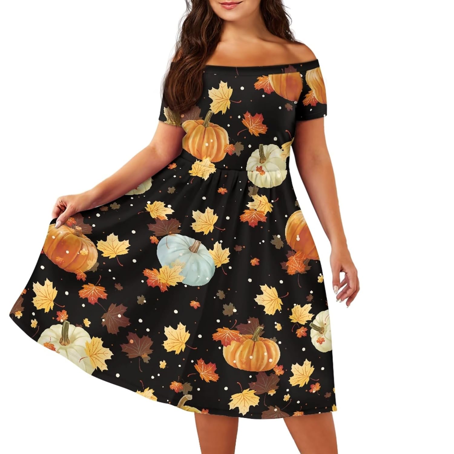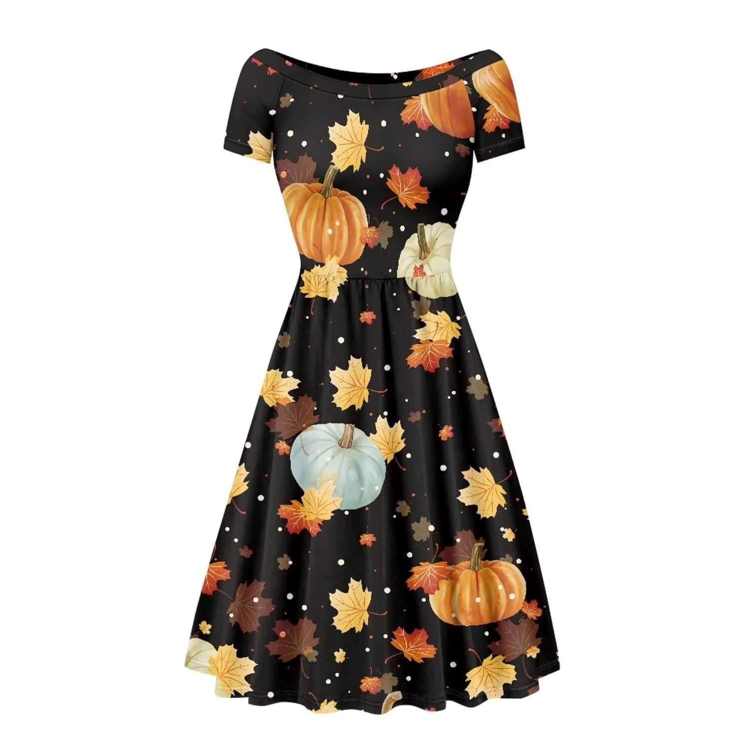 This dress is great for the fall season. It have leaves and pumpkins with great detail all over the entire dress. It has great stretch and is very comfortable it could fit someone that is larger and still be comfortable. It is a very good quality material that is great for work or an educational setting. My wife loves this and plans on wearing this to work and out for this fall season. Great value for the money two thumbs up!