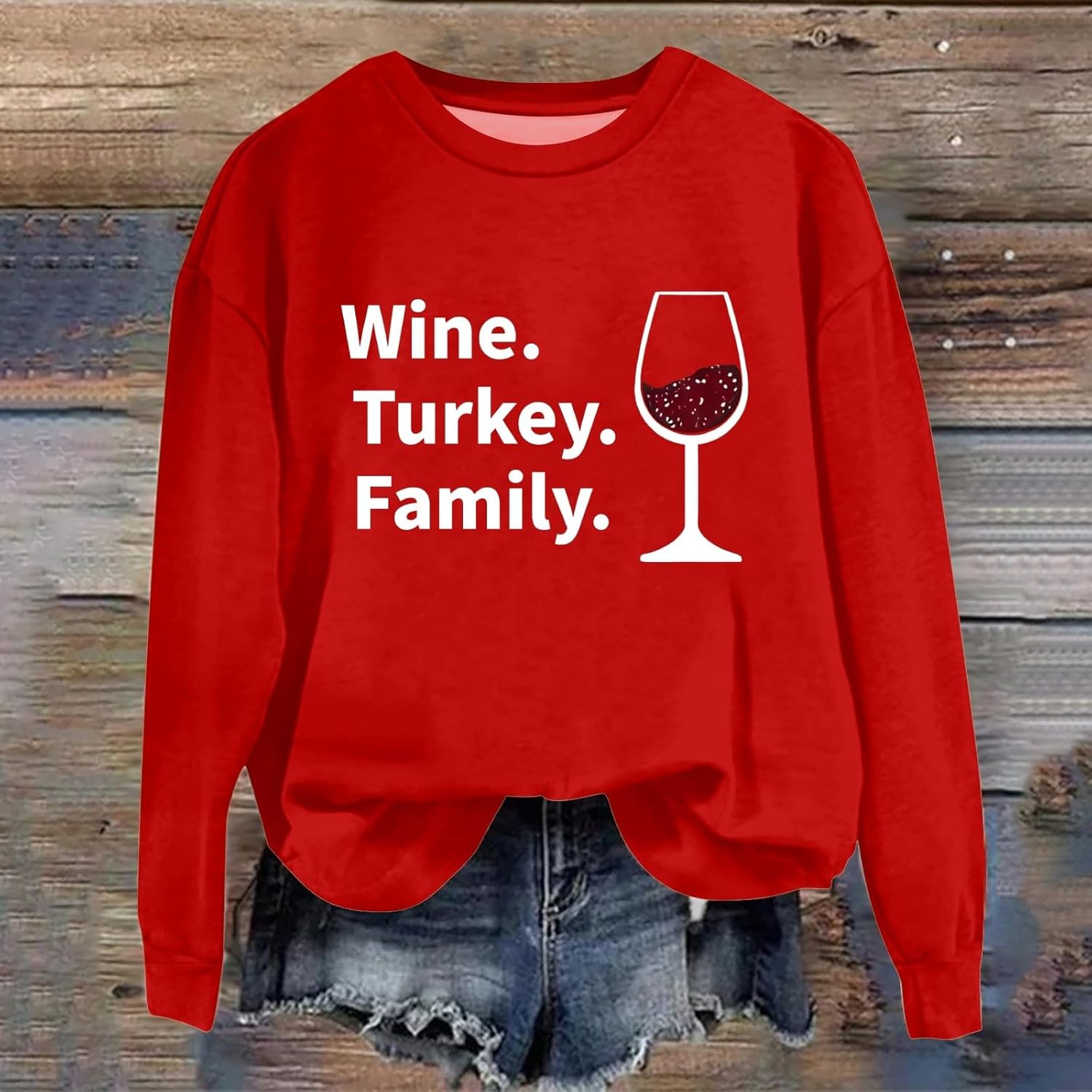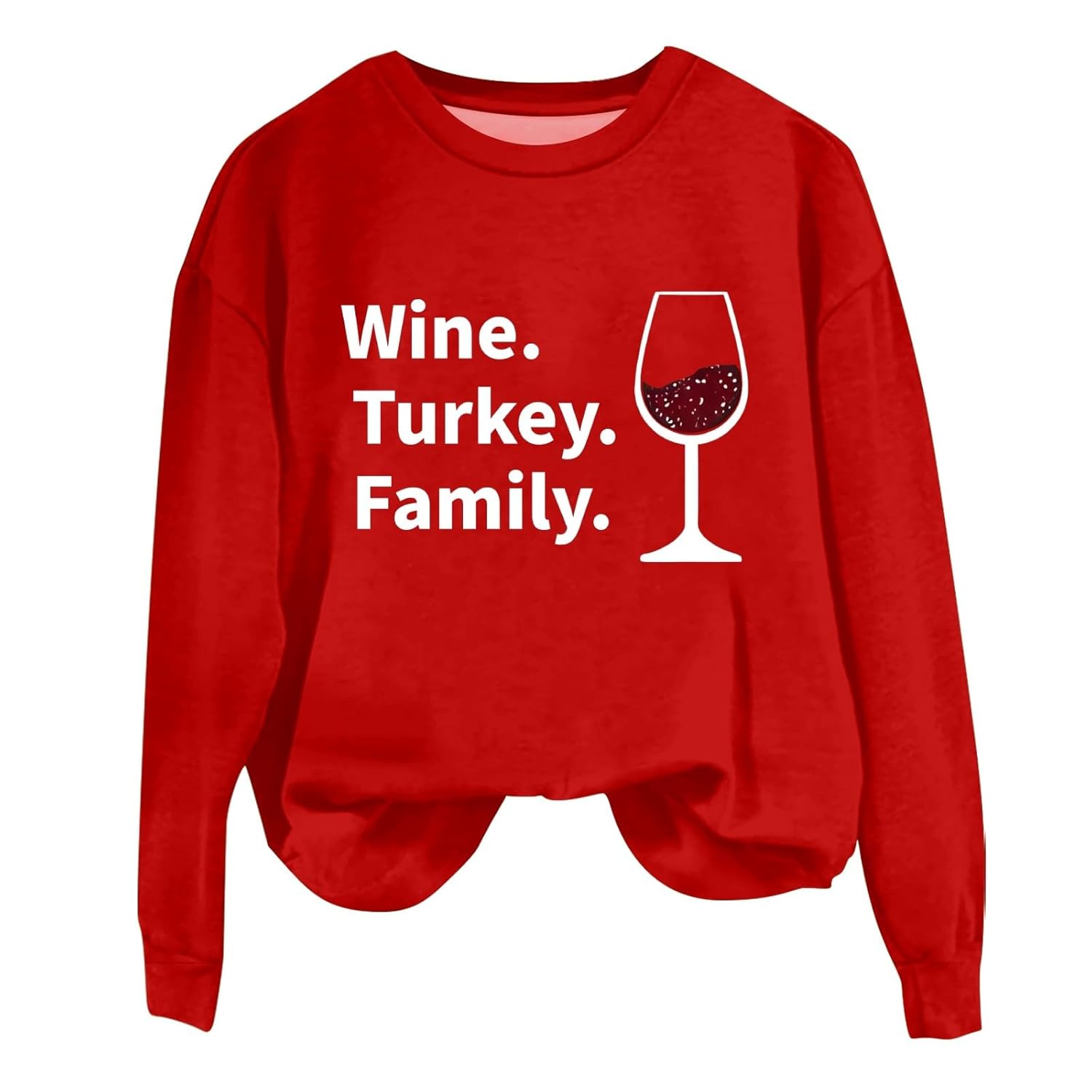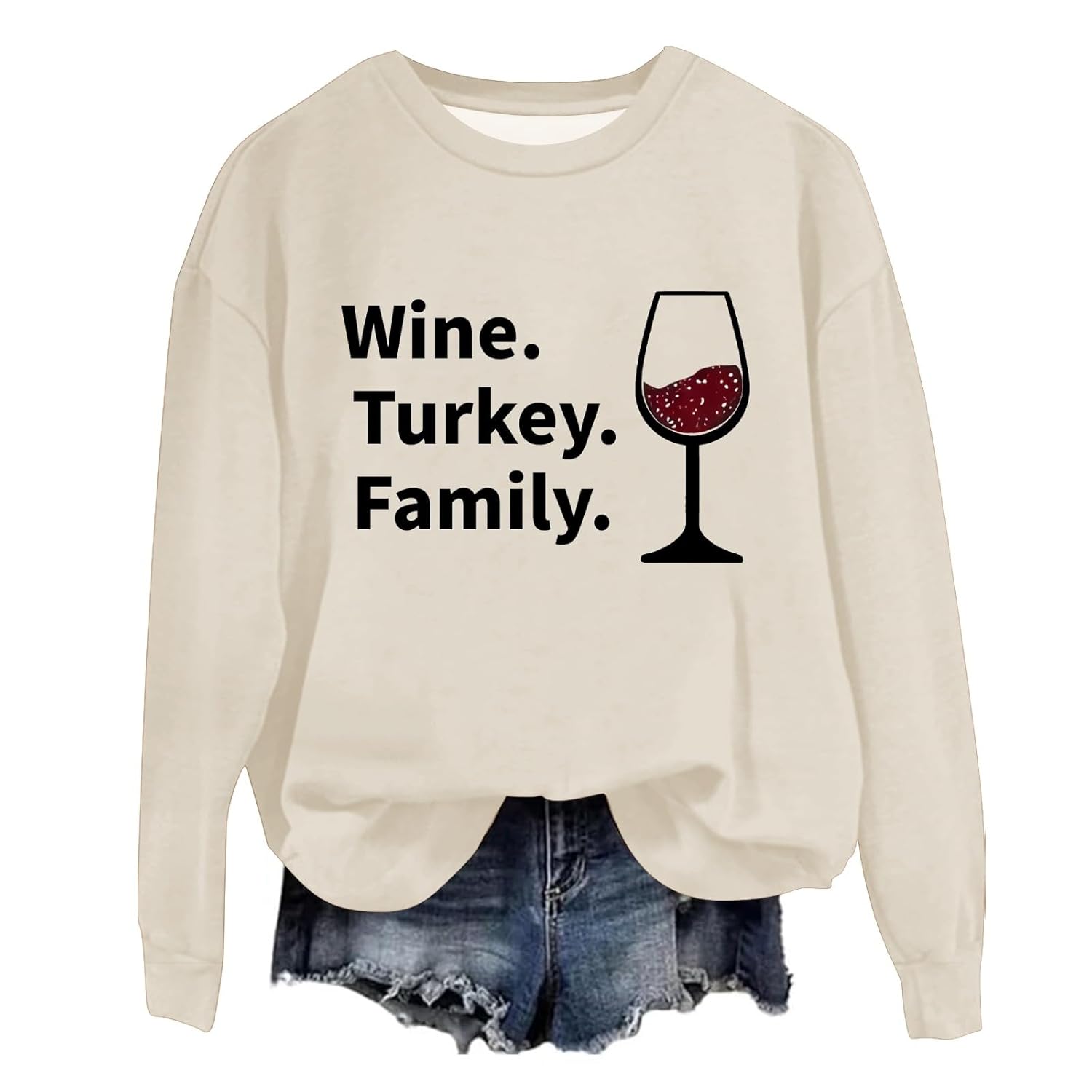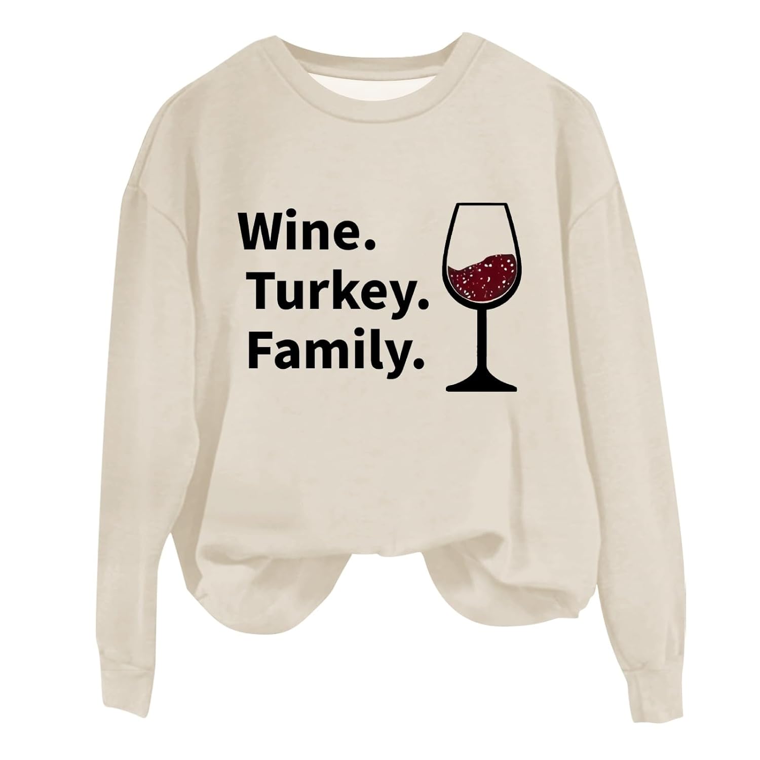 WTF Wine Turkey Family Thanksgiving Funny Family Sweatshirt For Women Plus Size Dressy Casual Than