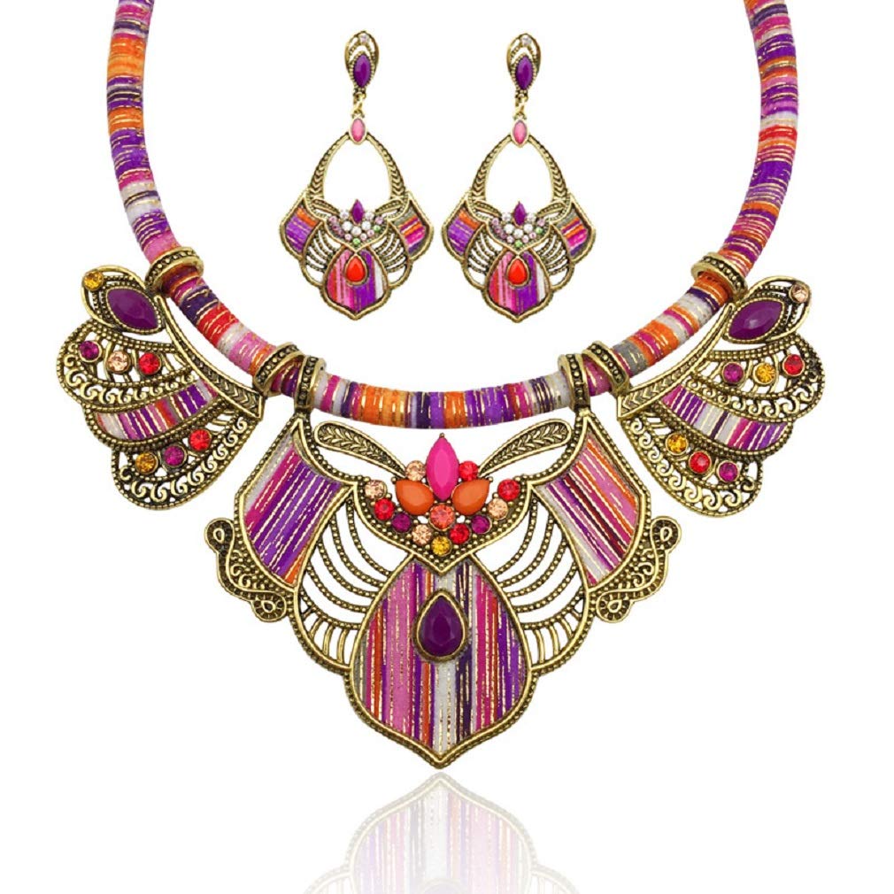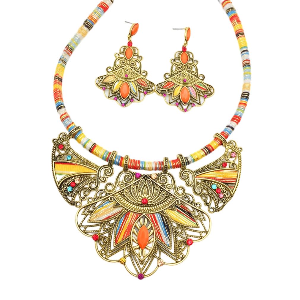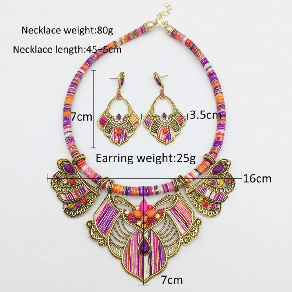 YAZILIND Chunky Necklace Earrings Women’s Bohemian Chain Tribal Jewelry Set Handmade Geometric Charm Bib Choker Necklaces